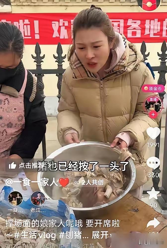 笑死了,又一个闯祸的。江苏有个小姐姐学人家办刨猪宴,结果猪杀了、桌子摆了一百多桌