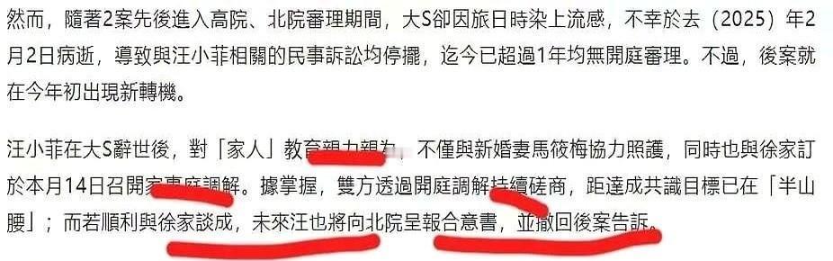 开篇爆点: 当法律文件开始收存,当外婆的态度从剑拔弩张转为沉默,这场持续数年的家庭战争,真正的转折点竟来自一个“外人”的一碗热汤。 事实铺陈: 汪小菲被拍到带孩子和马筱梅逛商场。 两个孩子自然地牵着她的手,马筱梅弯腰为女儿整理衣领的动作,被镜头定格了三次。 S妈的律师上周撤回了最后一份诉讼文件。 知情人士透露,撤诉前夜,她独自看了孩子在马筱梅怀里睡着的照片,看了很久。 法律纠纷的卷宗厚度,从最初堆满半个办公桌,到如今只剩薄薄几页。 而马筱梅的手机相册里,存着两个孩子从抗拒到主动拥抱她的127张照片。 情感转折: 成年人的战争里,孩子往往是最沉默的筹码。 但当筹码开始主动选择温暖,所有精心计算的博弈都失去了意义。 外婆的妥协不是认输,是看见了比输赢更重要的东西—— 孩子伸手要抱抱时,眼里没有算计,只有本能。 社交终局: 你说,一个家庭的裂痕,到底该用多少场官司来修补? 还是说,真正的缝合针,从来不在律师手里,而在那双愿意为孩子系鞋带的手上?