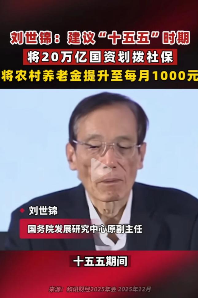 用国资反哺1.26亿农村老人养老!近期,国务院发展研究中心原副主任刘世锦提到给农村老人涨退休金的“两步走”方案值得借鉴! 说白了,用国资反哺农村老人养老,就是让曾撑起国家发展基石的群体,共享如今的发展红利,这事儿既接地气又戳中人心。 要知道农村60岁、65岁及以上老人比重分别达23.81%和17.72%,比城镇高出近8个和6.6个百分点,早已进入中度老龄化社会,但农村老人每月基础养老金大多只有两百多元,部分地区甚至不足一百元,这样的水平很难应对日常开销和医疗支出。 刘世锦提出的“两步走”方案,恰恰精准瞄准了这个痛点,给出了可落地的解决路径,核心就是通过“财政补一点、国资转一点、制度改一点”的组合拳,稳步提升农村养老金水平。 具体来说,第一步用三年时间把农村老人月养老金提升到600多元,达到当前农村低保水平,先解决基本生活保障问题;第二步再用两年时间冲刺每月1000元,逐步缩小与城镇职工养老金的差距。这个目标看似幅度不小,但并非空中楼阁,背后有坚实的国资实力作为支撑,更有明确的操作方向。 国资反哺并非新鲜概念,本质上是让全民所有的国有资产真正惠及全民,而农村老人作为贡献突出、保障薄弱的群体,理应成为重点受益对象。 数据显示,2023年我国国有资本权益总额达102万亿元,国有金融资本权益总额30.6万亿元,两项合计132.6万亿元,这是一笔庞大的“全民财富”。 刘世锦建议,可划拨部分国有资本尤其是国有金融资本到城乡居民养老保险基金,参照社保基金理事会7%以上的年收益率,仅划拨10万亿元国有金融资本,其收益就能让农村养老金水平提升一倍多。这种方式不是简单“花钱”,而是通过资本运作实现养老金的可持续增长,既不增加短期财政压力,又能形成长效保障机制。 山东的实践已经为国资反哺养老提供了鲜活样本。作为全国率先启动国有资本划拨社保基金的省份,山东将18家省管企业30%的国有资本划转至省社保基金理事会,通过股权分红机制累计实现分红超30亿元,社保基金权益较划转基准日增长45%,突破1680亿元。 这些收益直接充实了社保“蓄水池”,为提高当地农村养老保障水平提供了坚实支撑。这种模式既保证了国企的正常经营发展,又让国有资产的收益转化为老百姓的“养老钱”,实现了资产保值与民生增值的双赢,也印证了国资反哺养老的可行性。 除了国资划拨,短期财政资金的精准注入也能快速见效。目前我国每年有5-6万亿元的刺激政策资金,若从中划出5000亿元注入城乡居民养老保险基金,就能让农村老人月养老金从现在的220元提升到400元;若投入1万亿元,月均就能达到600元,正好契合“两步走”方案的第一阶段目标。 更关键的是,农村老人群体的消费倾向高达0.8,也就是说每投入1万亿元,就有8000亿元会直接转化为消费,再加上1.5的消费乘数效应,可拉动GDP增长约1.2万亿元,在保障民生的同时还能激活经济增长动能,堪称一举两得。 可能有人会疑问,国资反哺会不会影响国企发展?答案是否定的。划拨国有资本充实社保基金,并非直接抽走企业资金,而是以股权形态划转,社保基金作为股东按比例享有分红权益,不干预企业日常经营。 这种方式反而能完善国企治理结构,形成国资委与社保基金的制衡机制,推动企业更规范地运营。同时,方案还提到完善养老缴费制度,重点覆盖农民工集中就业领域,通过扩大缴费基数、优化缴费档次,进一步夯实养老金基金的可持续性,让保障体系更健全。 农村老人的养老问题,不仅是民生问题,更是关乎社会公平与经济可持续发展的大事。这辈老人没享过太多红利,却为国家建设付出了毕生精力,用国资反哺他们,既是对历史贡献的回馈,也是缩小城乡差距、促进共同富裕的必然要求。 刘世锦的“两步走”方案,既立足当下解决老人急难愁盼,又着眼长远构建长效机制,让发展成果真正惠及最需要的群体。 随着国资反哺机制的逐步完善,相信1.26亿农村老人能逐步实现“老有所养、老有所依”,过上有尊严、有保障的晚年生活,而这份民生温度,也将成为经济社会持续健康发展的坚实底气。 以上仅为个人看法,农村养老金上涨到每月1000元,你觉得这个目标合理吗?对于用国资反哺农村养老,你有哪些建议?欢迎在评论区留言讨论。