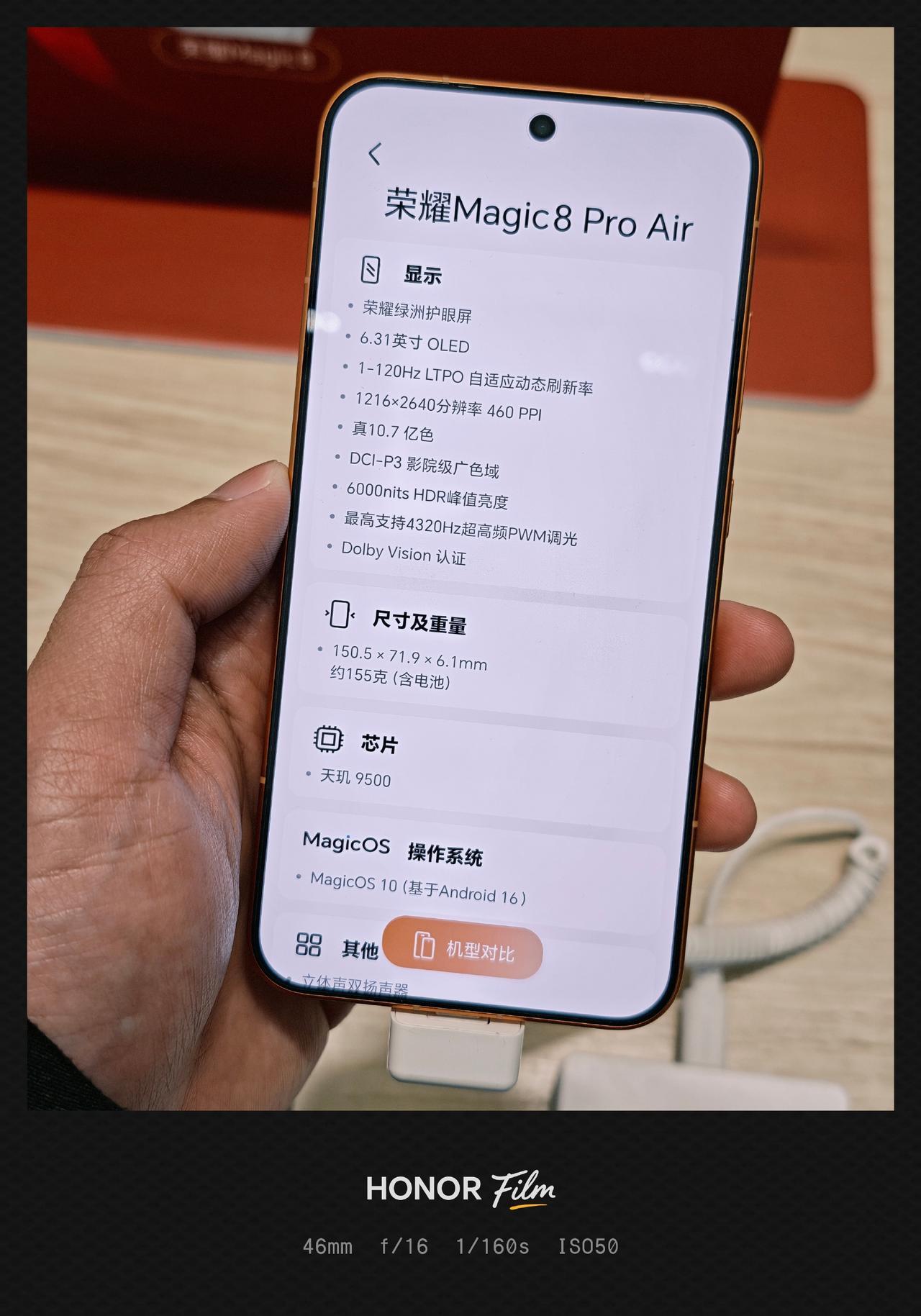 今日路过荣耀门店,特意体验了荣耀Magic8 Pro Air,手感确实舒适。关于配置,大家可自行了解。价格方面,店员透露预计在3-4K区间。据此分析有两种可能:一是低配版定价4399元,国补后降至4K以内;二是定价4599元,配合首发优惠100元,最终到手价约4499元。若真如此定价,市场竞争力将十分强劲。荣耀Mgic8 畅聊数码新品