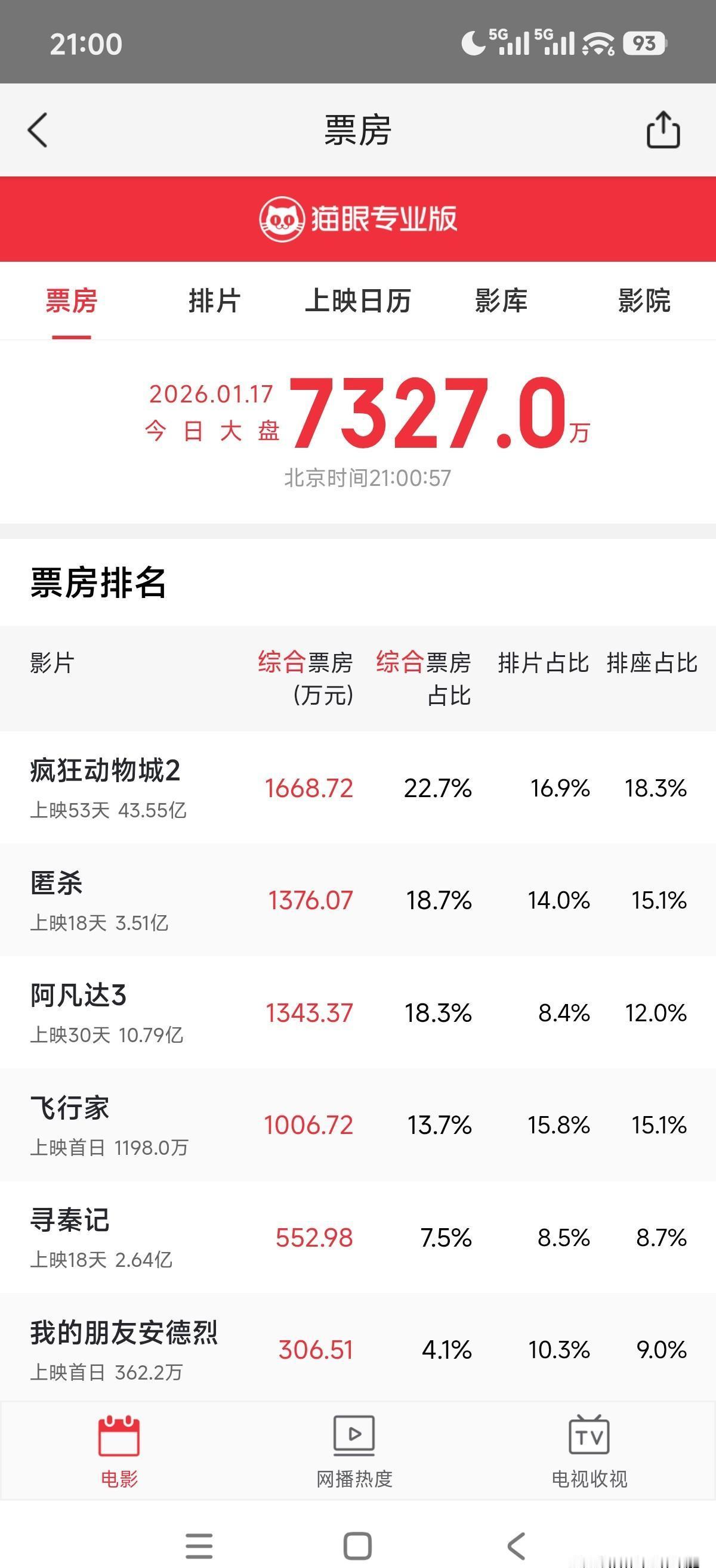 这个周末的电影院,冷清得我都有点心疼了。 单日大盘差点没到8000万,只有7327万。 你敢信? 这可是周末啊。 票房前三名,全是“老同志”: 冠军《疯狂动物城2》,上映53天了,还在榜首。 亚军《匿杀》,上映18天。 季军《阿凡达3》,上映都满一个月了。 不是它们太能打,实在是没新片可看。 所有人都在等。 等一个大的。 昨天,春节档预售一开,火药味就来了。 8部新片混战,《流浪地球3》《热辣滚烫》领跑。 预售首日总票房直接冲破了5000万。 现在的电影市场,像极了暴风雨前的宁静。 观众的钱包捂得比什么都紧,心里就一句话:让子弹再飞一会儿。 春节档的票,你准备先抢哪一部? 是继续为科幻巨制买单,还是换换口味看部喜剧? 有时候我觉得,看电影就像赴一场约会。 热闹是别人的,但手里的票根,终究是自己的选择。