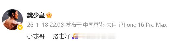 樊少皇悼念梁小龙 樊少皇悼念梁小龙:“小龙哥 一路走好🙏 ”梁小龙去世