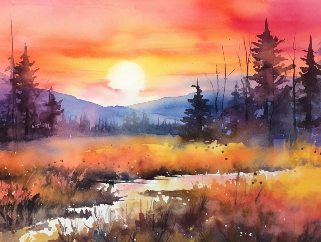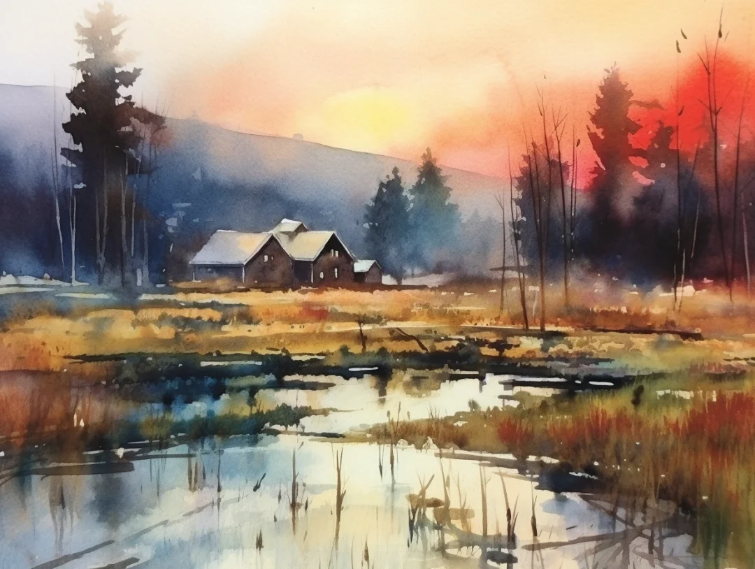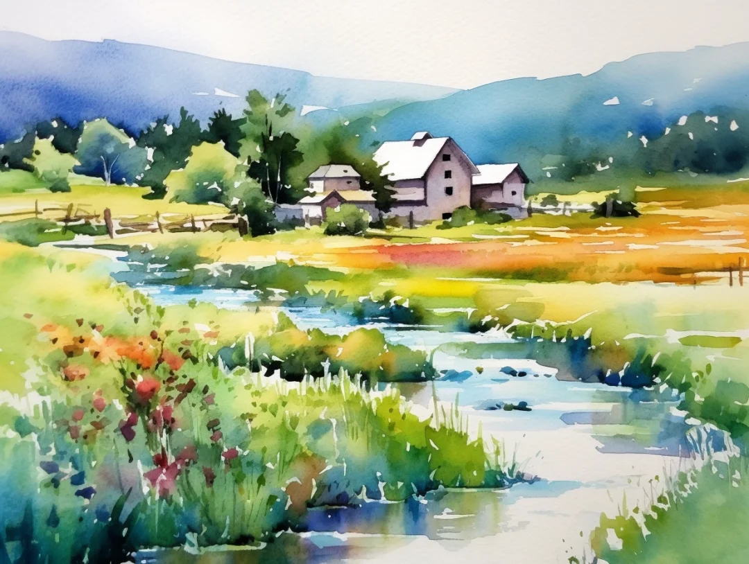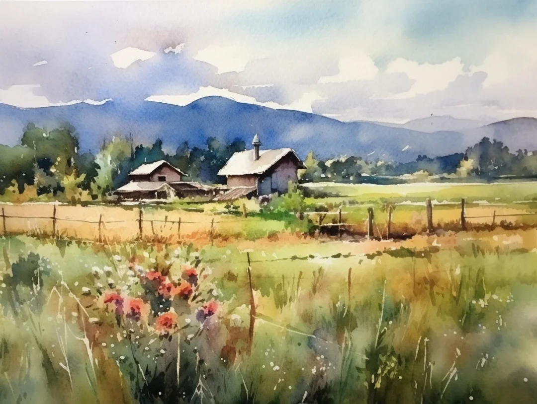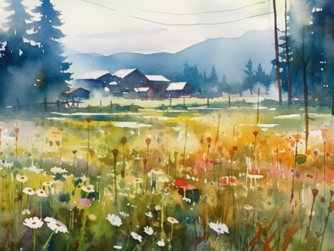 AI水彩风景:富良野