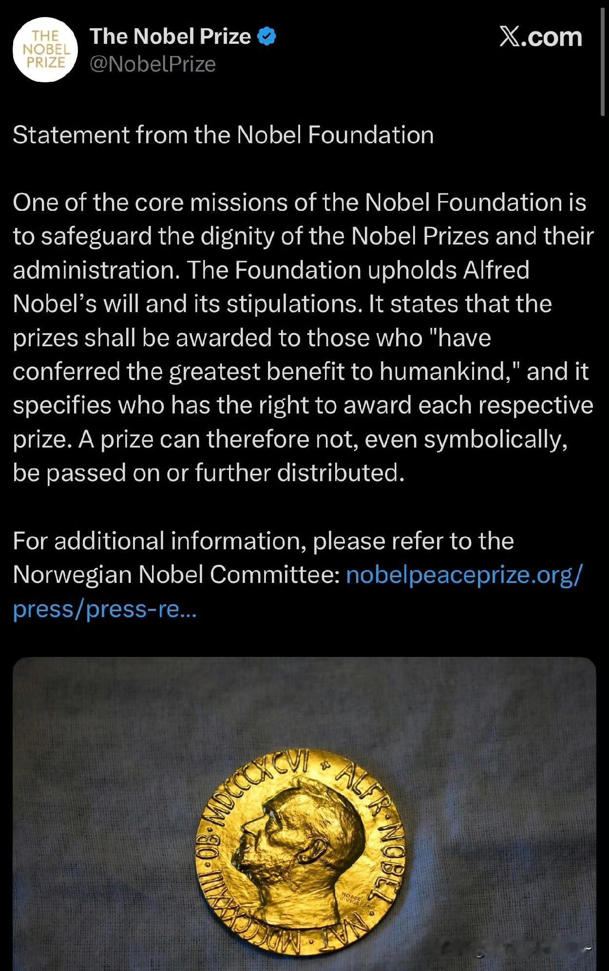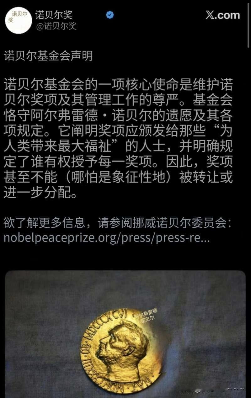 报!给特朗普上眼药了?[捂脸] 诺贝尔基金会发表声明:诺贝尔基金会一项核心使命是维护诺贝尔和平奖项及其管理工作的尊严…(图二、图三) 这眼药给特朗普上的,特朗普得好好看看,学习一下了!这是一项很严肃的事情,赶紧把诺贝尔和平奖还给人家吧,这个声明一出来,你自己拿着也没有什么分量,已经没有意义了,还是自己好好工作,今年争取一下吧,今年就别打仗,别登岛不就好了吗?