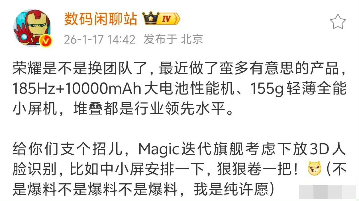 在数码闲聊站哥大佬爆料,觉得说得很中,好像荣耀就像换了一个团队一样,今年做出来的产品都是遥遥领先,续航更是做到第一名。