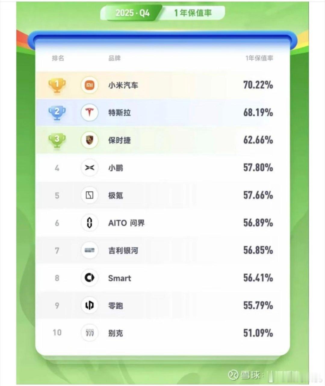 偷了个别人统计的新能源一年保值率,大家都知道高保值率靠的什么吧。