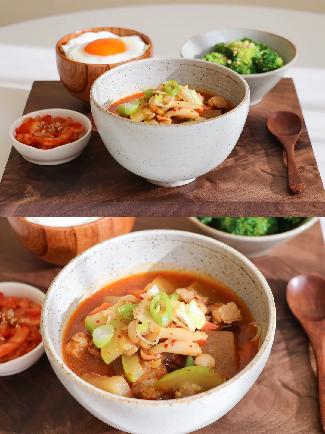 “最近东北一直在大降温,每天都想猫在暖和的家里不出去,今天中午太适合来煮一碗热热辣辣的猪肉辣汤了!喝完胃里暖暖的,和煎蛋米饭一起吃光光~”