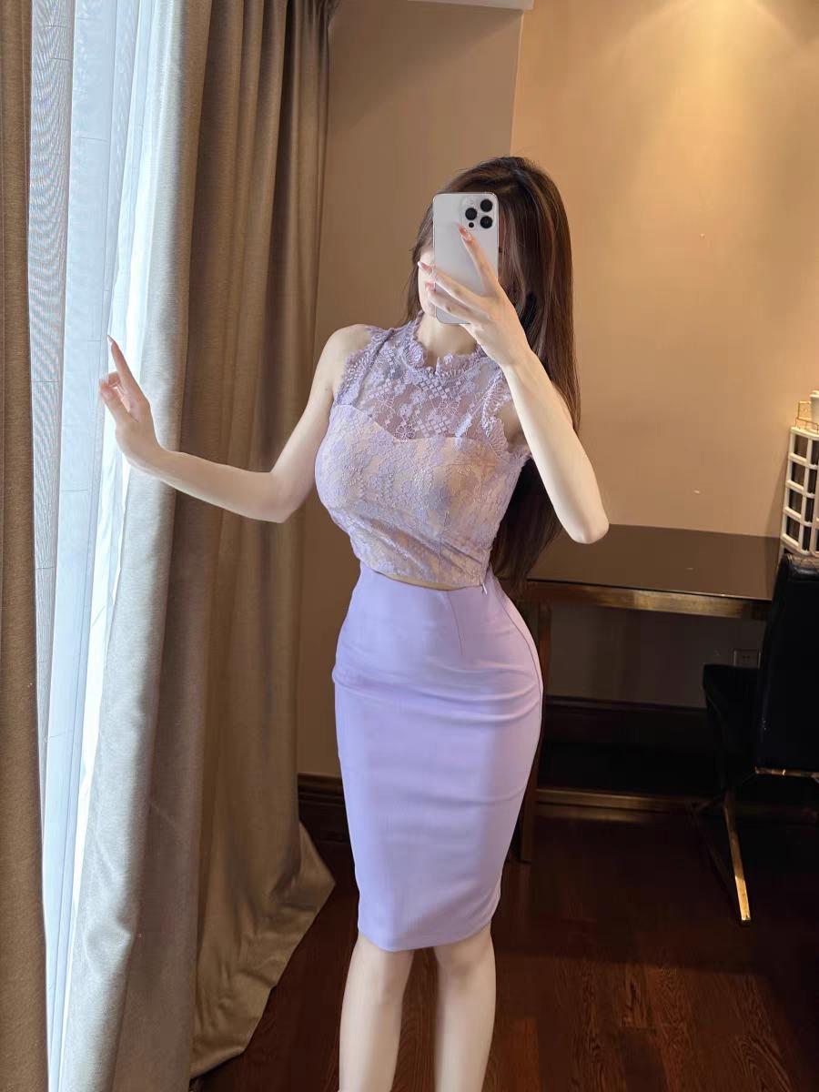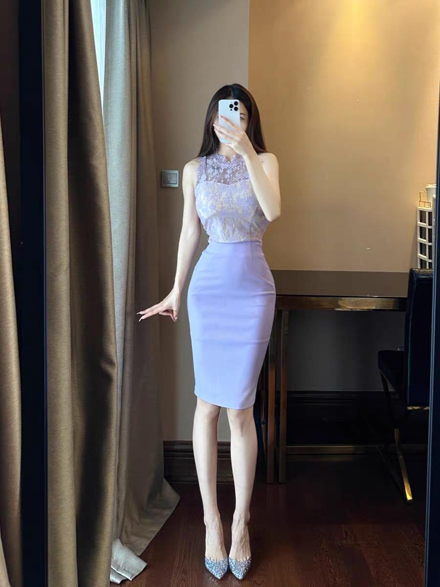 紫罗兰邂逅套装,高领蕾丝中长裙通勤款!通勤穿搭 通勤穿搭 气质蕾丝穿搭 温柔蕾丝穿搭 紫色蕾丝套装 轻奢紫罗兰