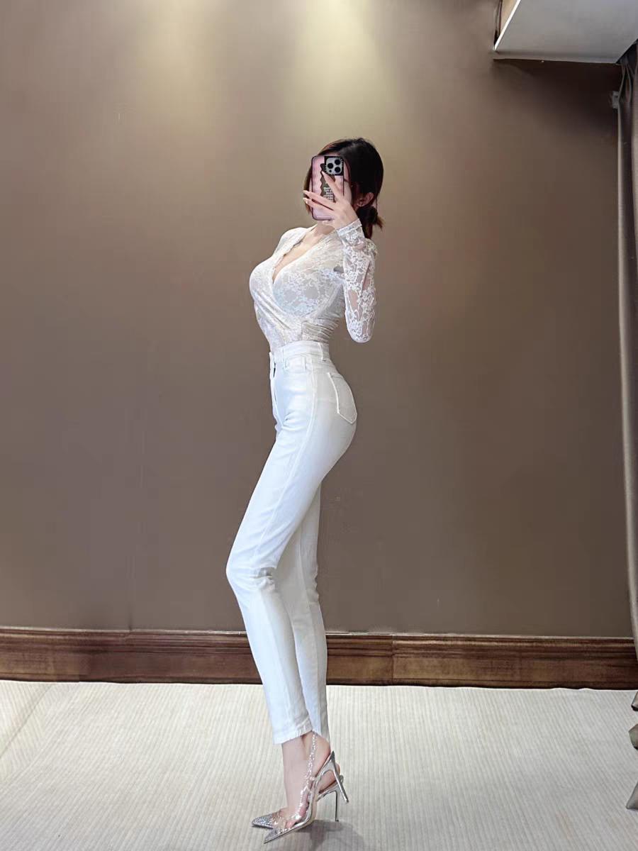 白色高腰小角牛仔裤,弹力修身百搭款!