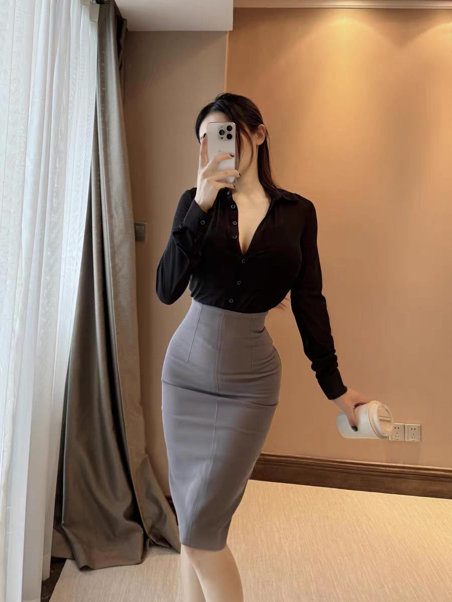 韩版修身中长裙,气质通勤风职场穿搭!韩版高腰长裙