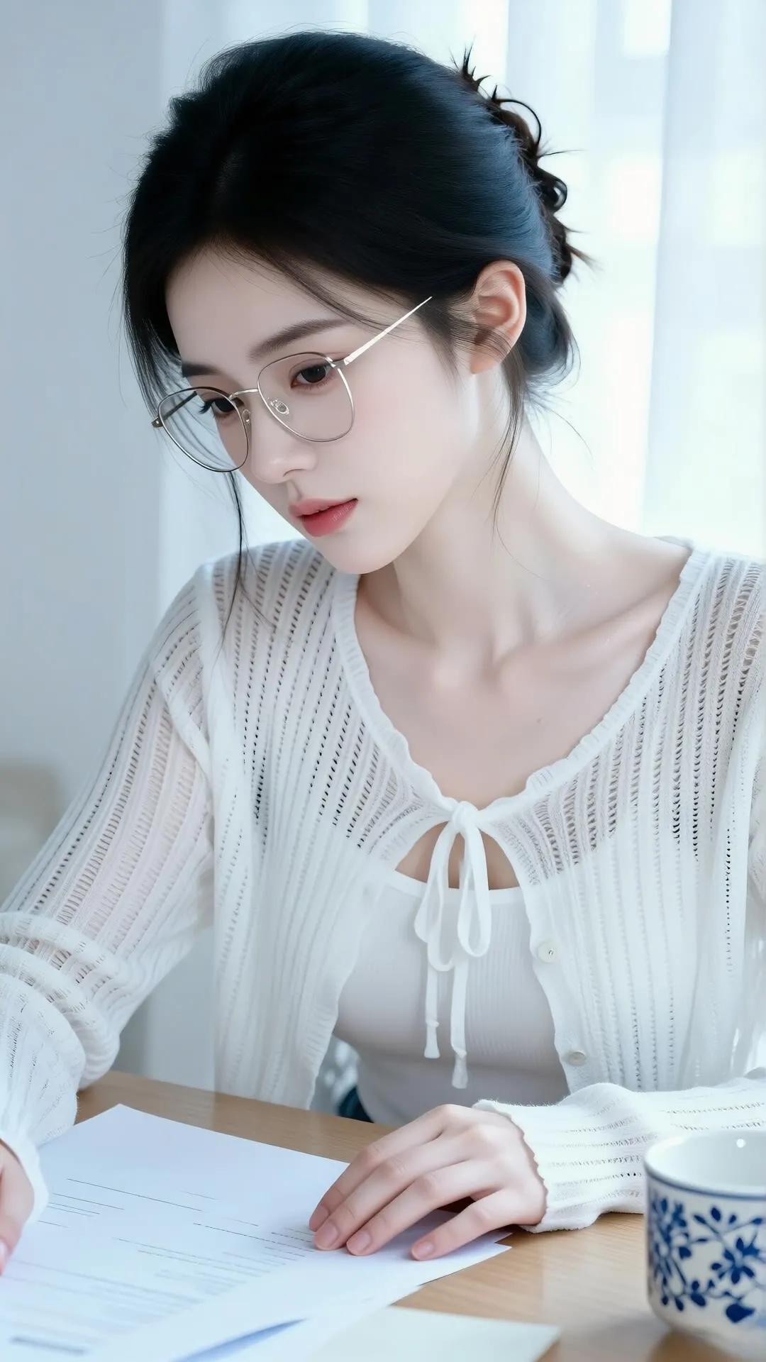 古风少女,静坐床边,轻纱飘逸,梦回古代。