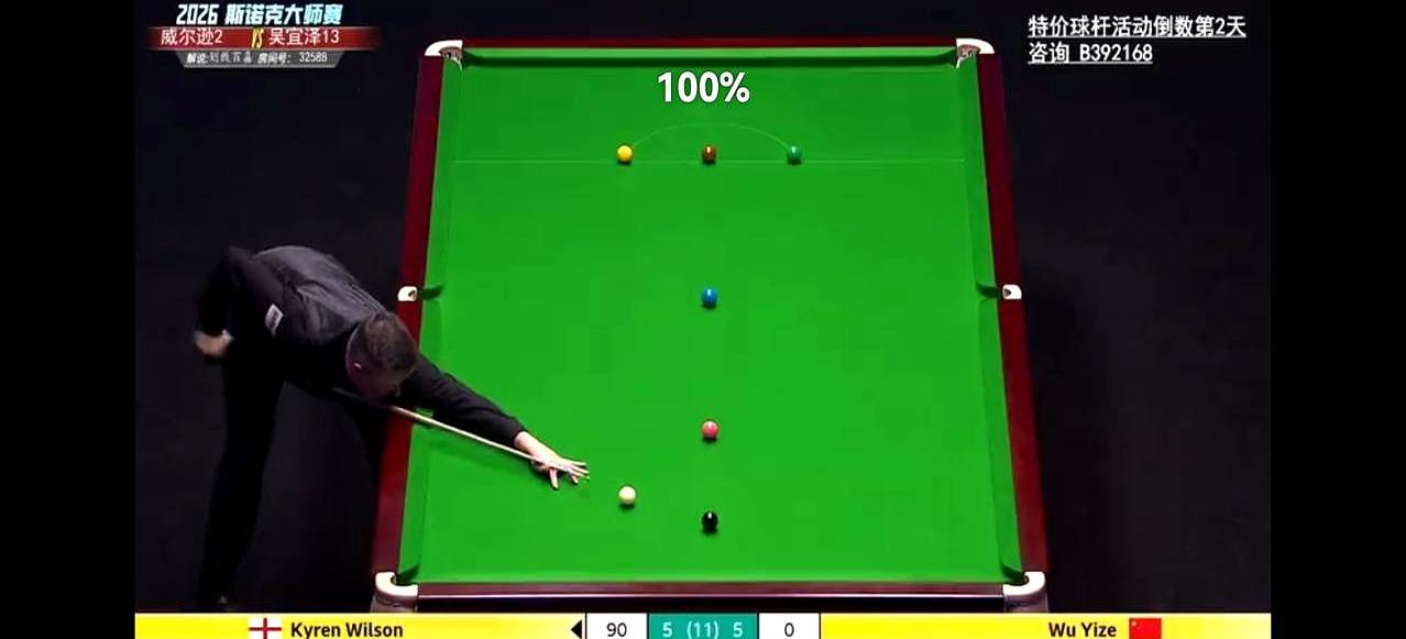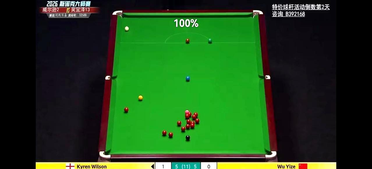 5-6,吴宜泽倒在最后一杆 只差一颗黑球,就能把世界冠军拉下马。00后小伙从