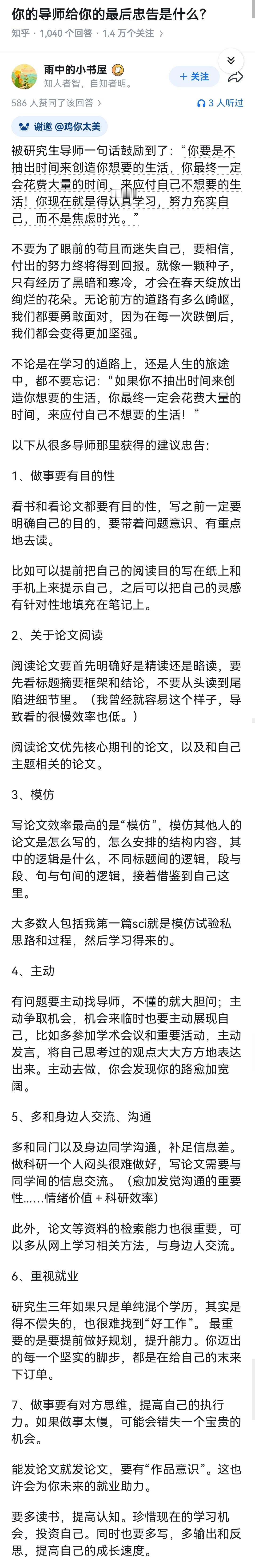 你的导师给你的最后忠告是什么?