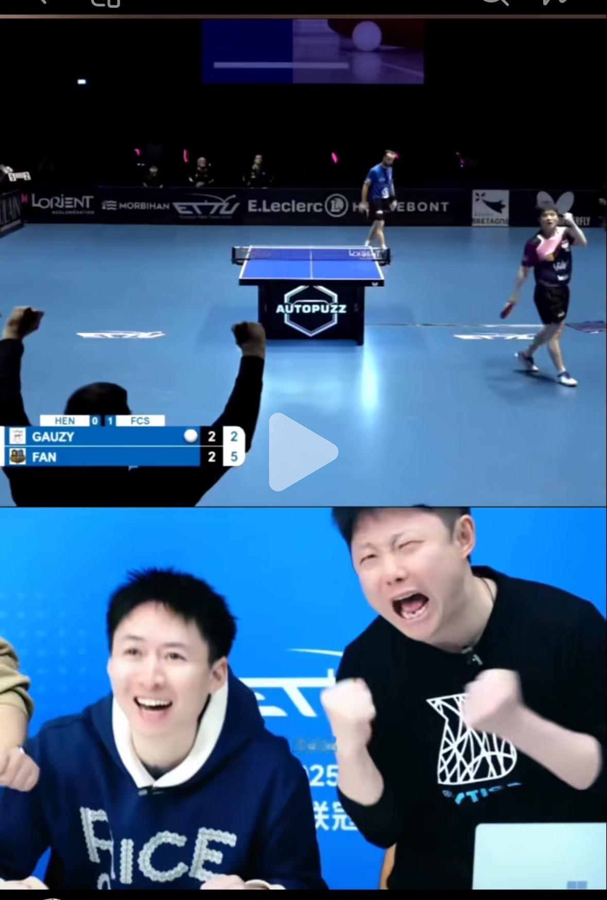 樊振东3:2逆转西蒙高茨太精彩 ——看看方博激动的样子 第四局16:14显示出东哥超级大心脏🫀 没看直播的球迷真的是太可惜啦, 樊振东对战西蒙高茨太激烈的比赛, 特别是第四局, 我都站起来给东哥加油, 太紧张太激动啦, 樊振东在大比分1:2落后的情况下, 第四局的比分一直交替上升, 8:8平一直到16:14, 第五局决胜局抢6, 樊振东开局0:2落后, 东哥接下来火力全开, 连拿6分,6:2拿下西蒙, 西蒙高茨直接懵啦…… 全场沸腾! 西蒙高茨主场状态爆燃, 东哥代表的萨尔布吕肯来到西蒙的主场法国比赛, 场地和球台都不适应, 直播间有人给西蒙加油, 就等着看樊振东的热搜, 不过樊振东力挽狂澜, 让黑粉失望了! 萨尔布吕肯三大巨头汇合, 樊振东,莫雷加德, 弗朗西斯卡各拿一分, 萨尔3:0亨尼邦, 拿到三分! 大半夜的直播间竟然有几万人, 看来大家都惦记着留洋的樊振东啊…… 看看方博激动的样子……