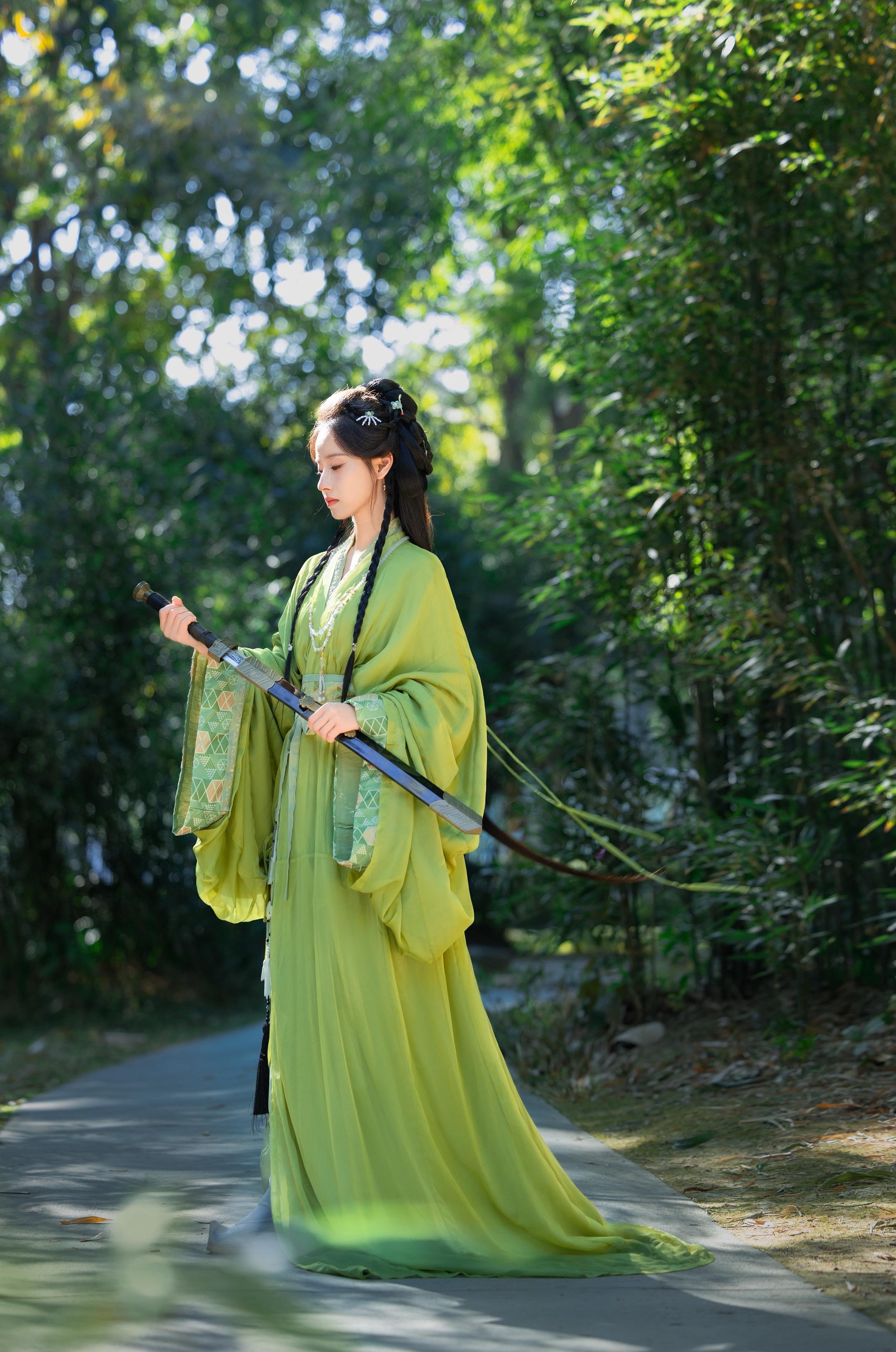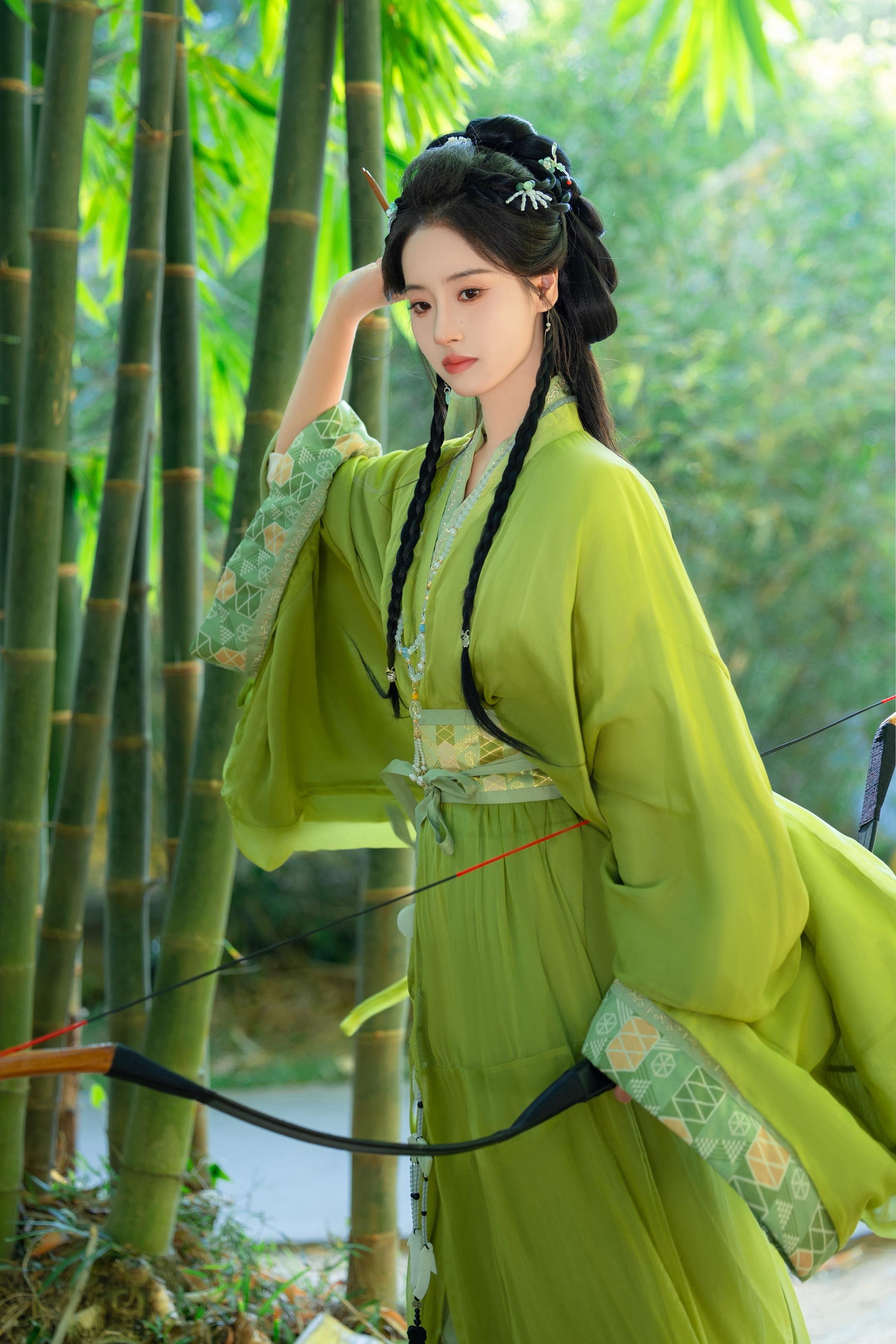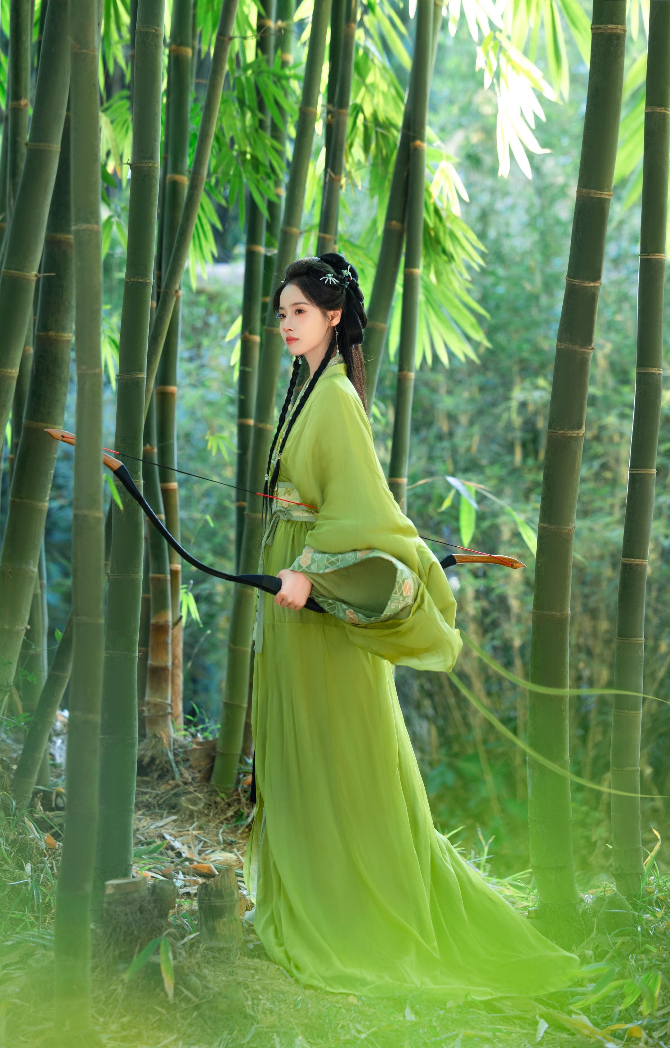 陈都灵楚朝。绿竹版仿拍,加了弓箭,真的太帅了
