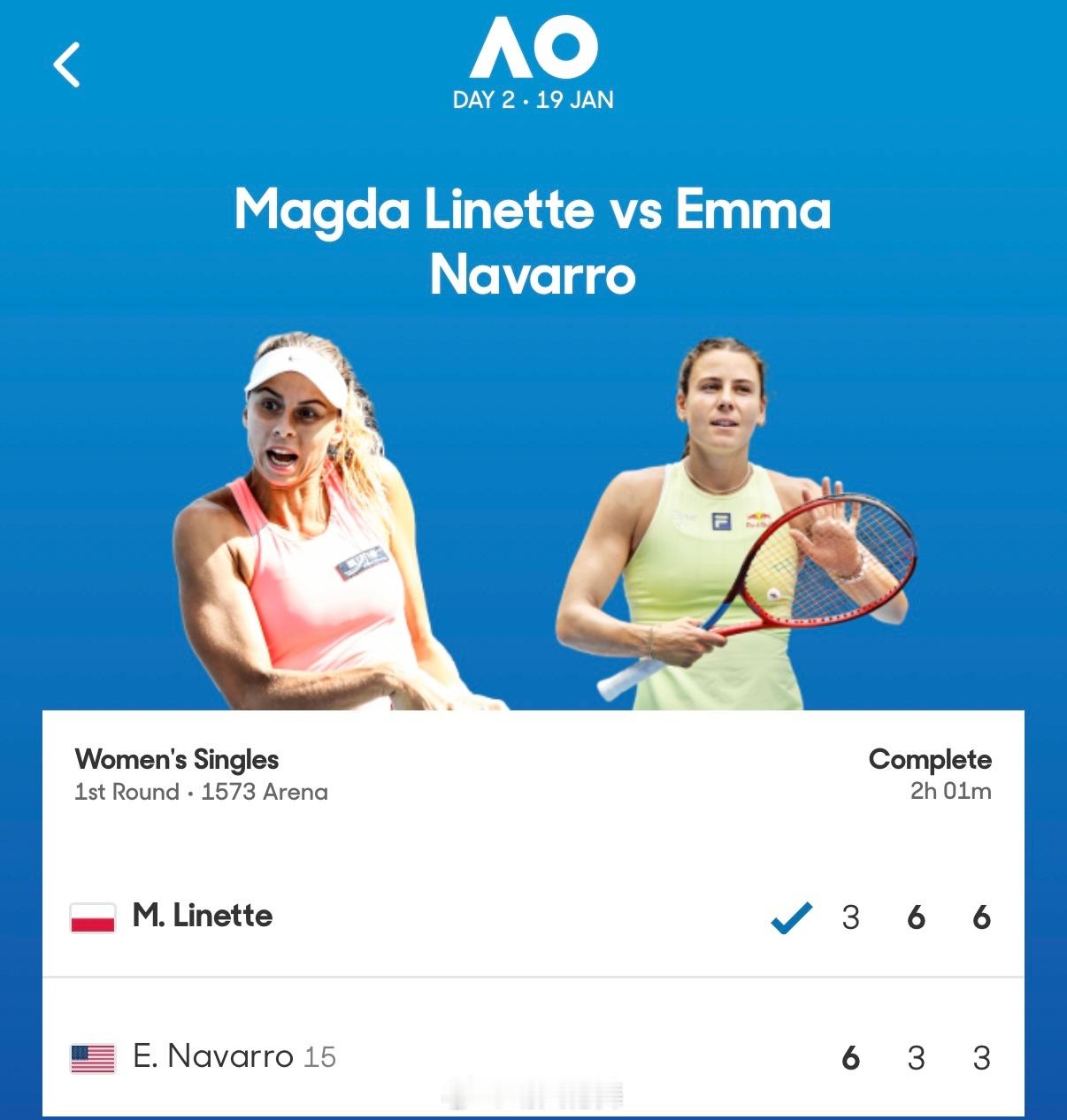 澳网2026 女单首轮15号种子纳瓦罗🇺🇸以6-3/3-6/3-6惨遭里内特🇵🇱逆转出局,扣除去年八强积分,即时排名下滑至第17位!这很澳网