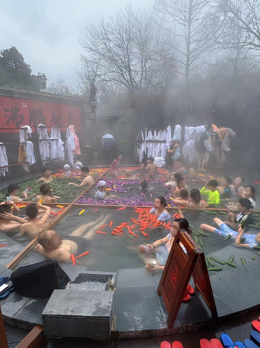 有人说,泡这种温泉不脏吗? 为啥温泉里放很多黄瓜,胡萝卜,这是有啥讲究吗?温泉 温泉♏