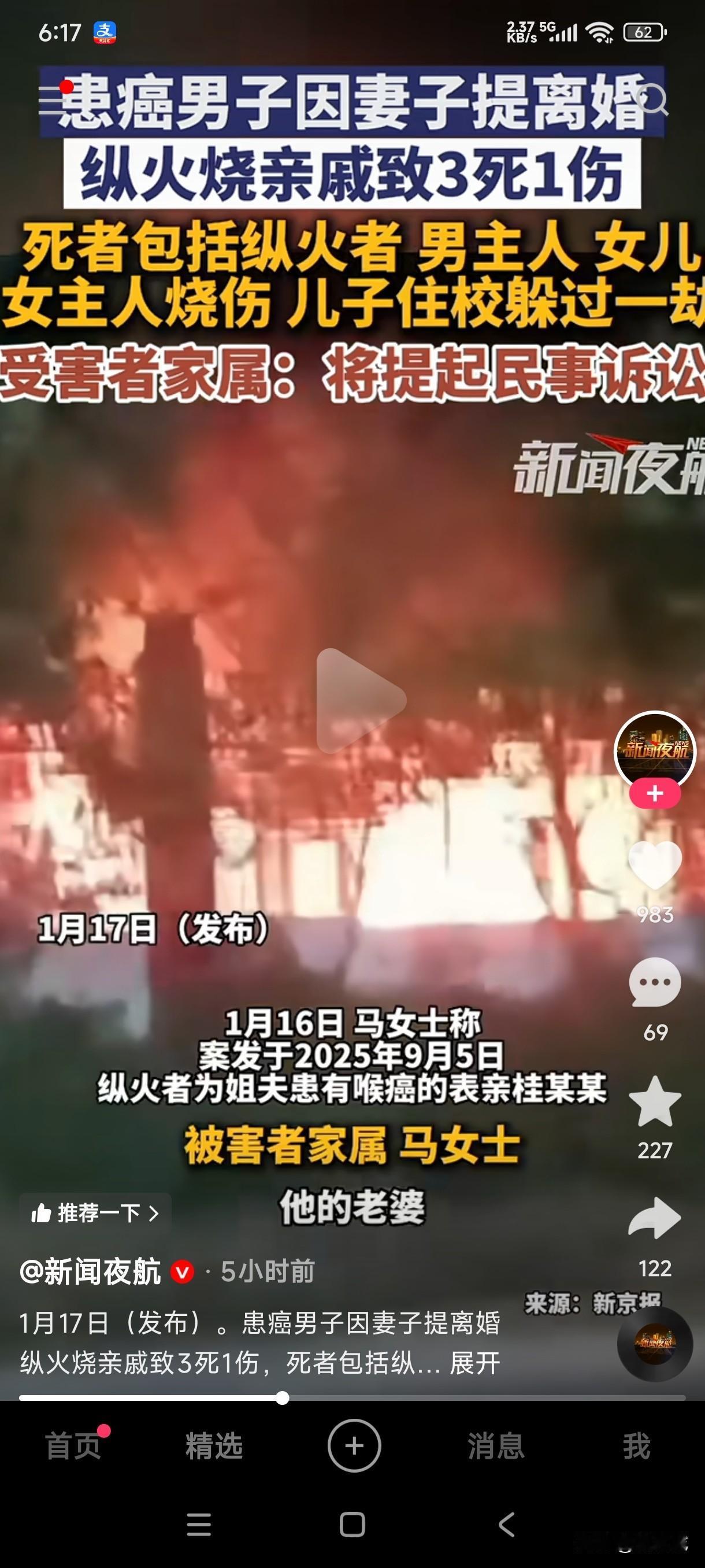 患癌男子因妻子提出离婚放火烧亲戚家,烧死自己还有男主人和女儿,女主人被烧伤,儿子住校躲过一劫,受害者家属起诉,那这个赔偿谁来付? 常言道夫妻本是同林鸟,大难临头各自飞,夫妻一方患癌或者有久治难医的疾病,另一方提出离婚的事已经见怪不怪了,对于有些夫妻来说彼此只能共享福而不能共患难,但这男子的做法实在让人不能理解,他自己患癌妻子提出离婚他为什么要放火烧亲戚家?难道她妻子提出离婚的想法是亲戚给怂恿的? 我们作为局外人不清楚事情的来龙去脉也不好评论,只是看到如此揪心的事确实让人感到心痛,如今这男子因为妻子提出离婚他却把亲戚家给烧了,自己也被烧死了,还烧死了男主和女儿,女主被烧成了重伤,只有他家儿子在住校有幸躲过了一劫,这种亲上加痛的事让人如何去面对。 受害者家属也提起了民事诉讼,这肯定少不了赔偿,如今放火的人也被烧死了,那这个赔偿到底该谁来付,如果妻子还没有离婚,是不是应该让她妻子来赔偿,如果已经离婚了,是不是应该让他的子女向受害者家属赔偿呢?如果他们离婚的真正原因真是亲戚在后面煽风点火怂恿的,那这亲戚是不是后悔的肠子都青了,只因为自己多嘴出的馊主意导致家破人亡,造成内心的阴影是不是一生都无法原谅自己? 谁都无法预知自己身边的人会是一个什么样的人,吃自己的饭操自家的心,尤其是这种出谋划策破坏别人家庭的事,难免会遭到报复,就如这位患癌男子一样,他这种不可取行为不仅害了自己,更是害了别人,这到底该怪谁呢?一个巴掌究竟能拍的响吗?