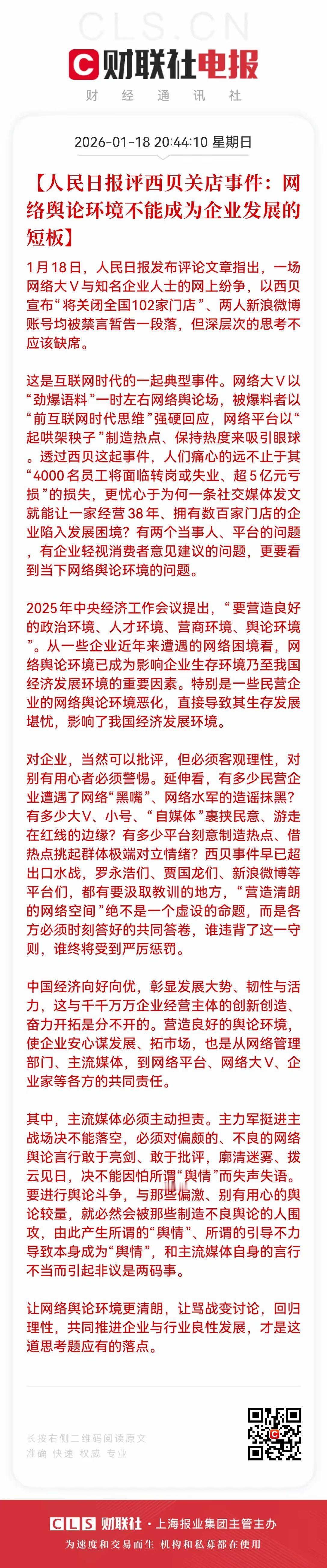 人民日报,这次有点拉偏架了! 这是人民日报下场评论西贝事件:网络舆论环境不能成为企业发展的短板! 西贝事件,之前已经评论过一次!在这里我再说一遍:第一,这次西贝莜面村102家店关闭,是迟早的事,只是之前没有人爆出来。 第二,到底罗永浩有没有扭曲事实?刻意夸大其词?这个从我去吃过多次西贝的经验可以知道,基本上符合事实。 第三,此次问题主要是出在贾国龙身上,他对消费者的关于“预制菜”的情节和认知,并不清楚,以为国家标准,就是老百姓认可的。 所以,这个事,本可以避免,但是碰上这个老板,非要蹬鼻子上脸。 就只能这样收场了。 网络该清理,大咖也要带头表率,不过这次,我挺罗永浩。