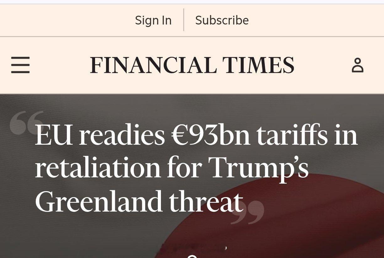 欧盟报复美国欧盟或对美930亿欧元商品加征关税《金融时报》:继特朗普因格陵兰岛问题对欧盟国家加征关税后,欧盟正准备对美国加征价值930亿欧元的关税。欧盟斗不过特朗普,欧盟会认输的。