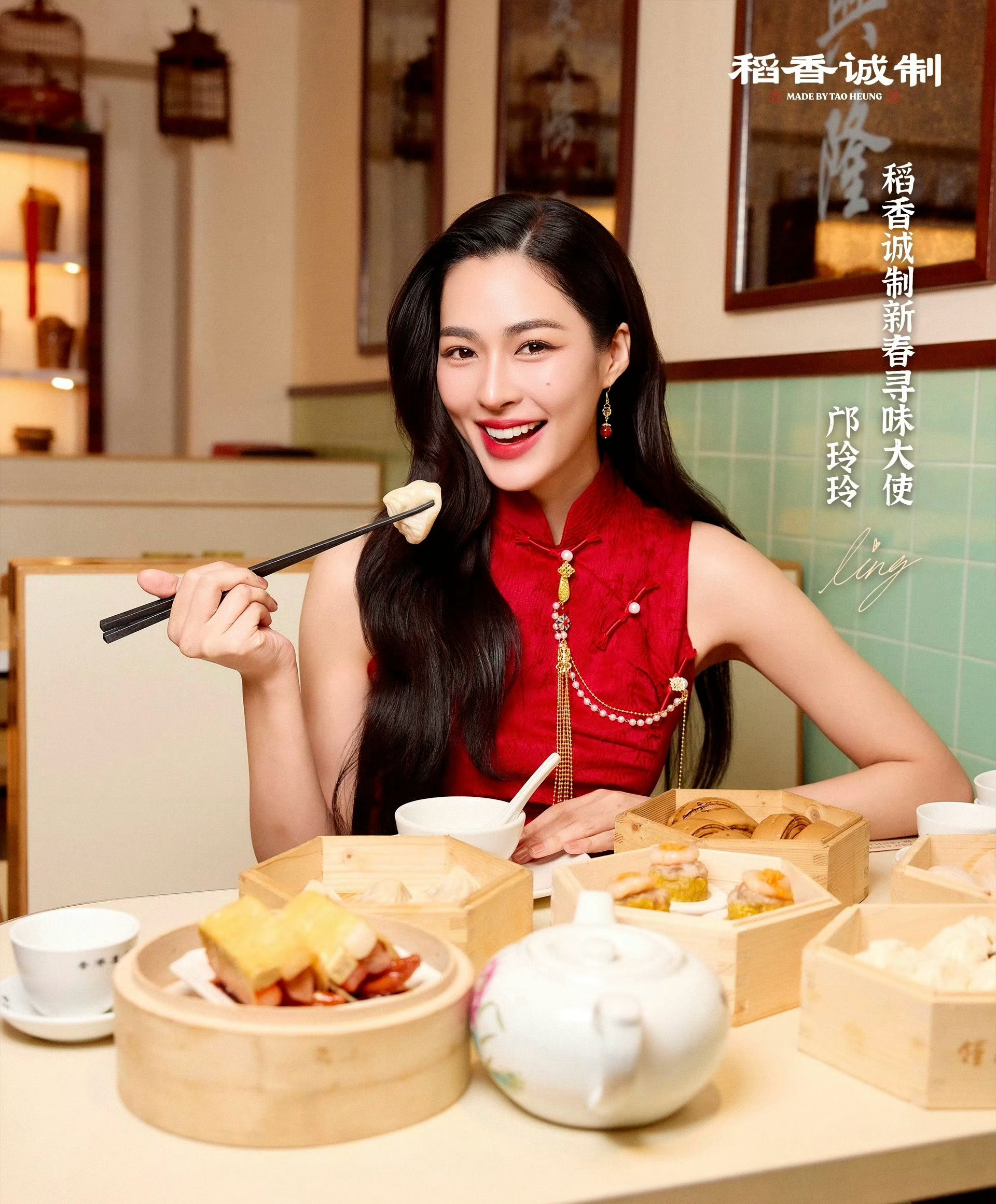 芝士娱乐 爱看一些穿旗袍喜气洋洋的邝玲玲🧧今日份的宣传物料太美啦 linglingkwong 稻香诚制品牌代言人邝玲玲