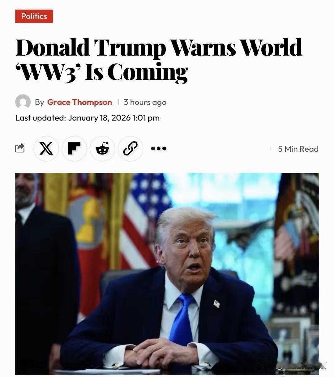 目前符合第三次世界大战的所有条件都已成熟,但是三战为什么还没爆发,其实还有两个关键因素还没成型, 第一阵营尚未成型,我们从一战和二战的几个参战国来看,中美英法德苏日,两次世界大战的主要参战国都是这七个国家,当然还有意大利,但是意大利可以忽略不计,这七个国家里面分成了两大阵营,说白了就是两大阵营之间的互相角逐,但是目前世界的现状是,美日在一个阵营,英法德一个阵营,中俄虽然没有明说,但是也算同属一个阵营,这里就三个阵营,现在的状态就是三个阵营之间相互制约,在这种情况下想打起来几乎不可能,三大阵营之间都是互有矛盾互有冲突,虽然表面上中俄和美日的矛盾最大,但是并没到你死我活的地步,反观美国和欧洲的矛盾现在是急转直下,大有大打出手的态势,而这个情况的关键点就是格陵兰岛,对于欧洲国家来说格陵兰岛非常重要,如果说格陵兰是个战争的导火索,那么在这个导火索爆发之前就必须要开始拉班结派,美国已经开始了,一方面向欧洲各国施压,一方面向中俄示好,表明了要拉中俄的支持,但是中俄跟美国没什么太大矛盾,但是中国跟日本矛盾最大,如果美国要拉中国就必须牺牲日本,其中包括恢复中国和俄罗斯在日本驻军的权利以换取中俄的支持,只要美国能拿到中俄的支持欧洲就彻底凉凉了,反观英法德也希望能够得到中国的支持,俄罗斯不可能支持英法德,因此中国支持英法德的几率微乎其微,所以中俄很大概率会站在美国这边,美国也很大概率牺牲日本来换取中俄的支持,这是第一个因素, 第二个因素就是民粹主义,无论是一战还是二战,爆发的根本原因就是民粹主义的盛行,到目前为止民粹主义尚未大规模爆发,尤其是针对种族国家之间的民粹主义每次都要抬头的时候都会被一只无形的手给按压下去,这也就导致民粹主义很难传播的原因,但是一旦民粹主义大规模爆发,那就说明战争离我们真的不远了。