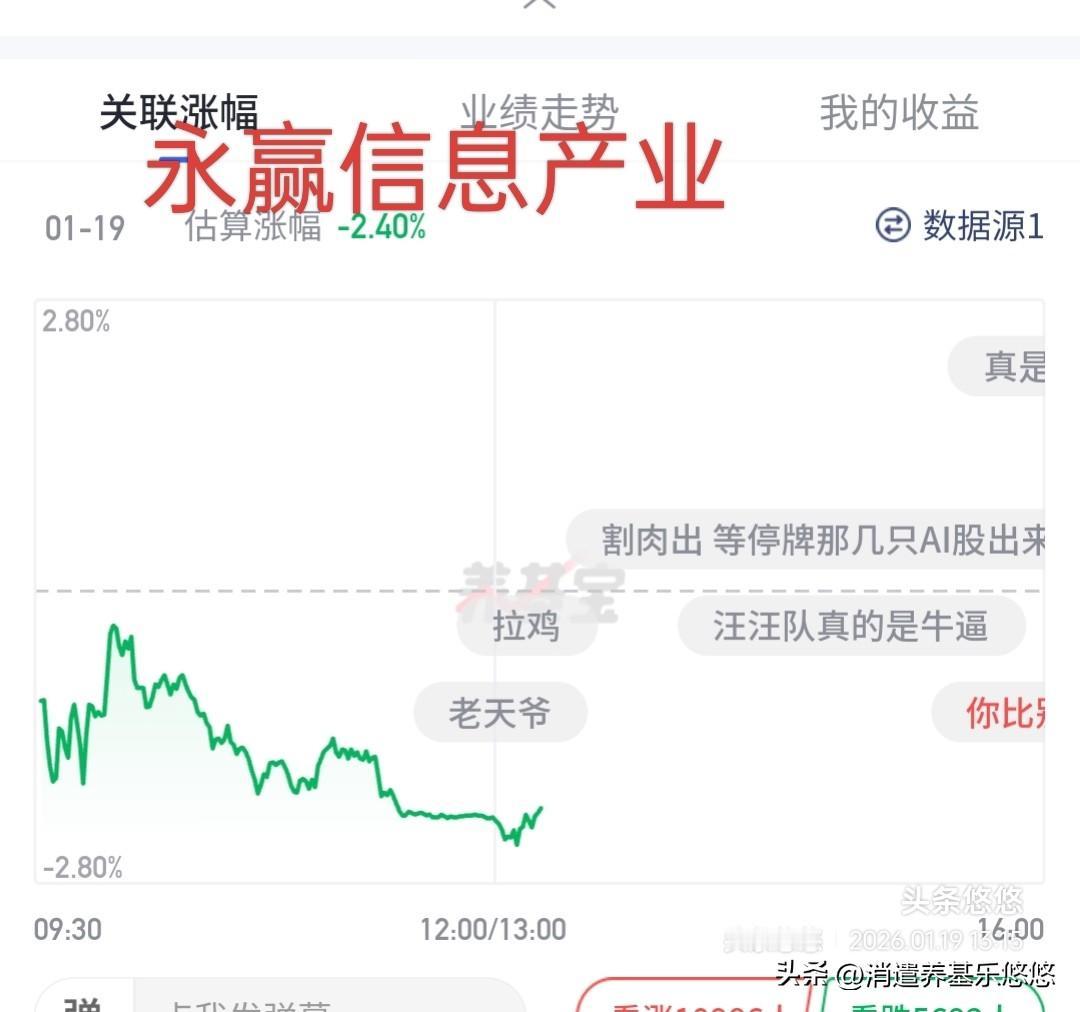去年持有基金大都是永赢家里基金赚的钱,比如永赢机器人,永赢医药,永赢低空经济,上周我又选择进入了永赢信息产业,当时是在永赢信息产业与申万菱信数字产业比较后,最后决定选择了永赢家里的,因为相信永赢基金弹性大业绩靓丽,对它独有情钟!但是,这次估计选择错啦,从这两天表现看,它不如申万菱信数字产业,今天申万红,而永赢大跌超2%!怎么办?