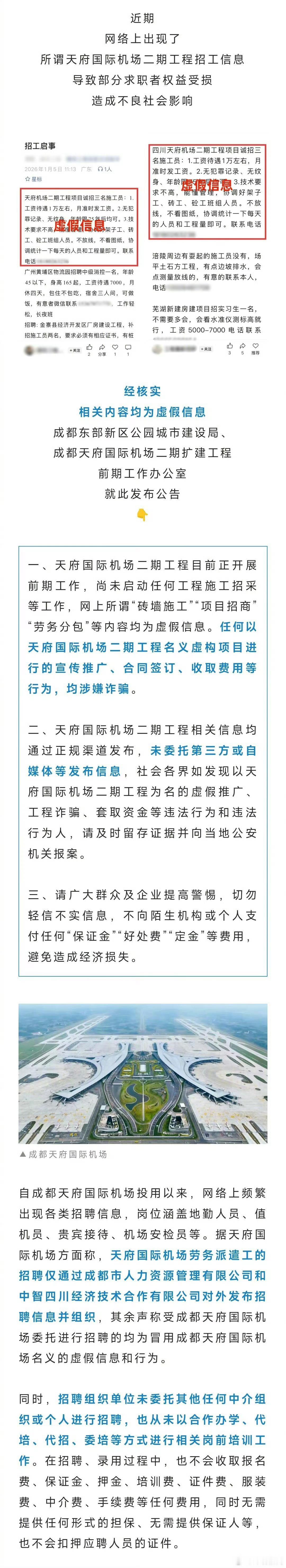 官方辟谣天府国际机场招工信息一个这破玩意儿还造谣,关键是人正儿八经施工员可不止月薪一万啊
