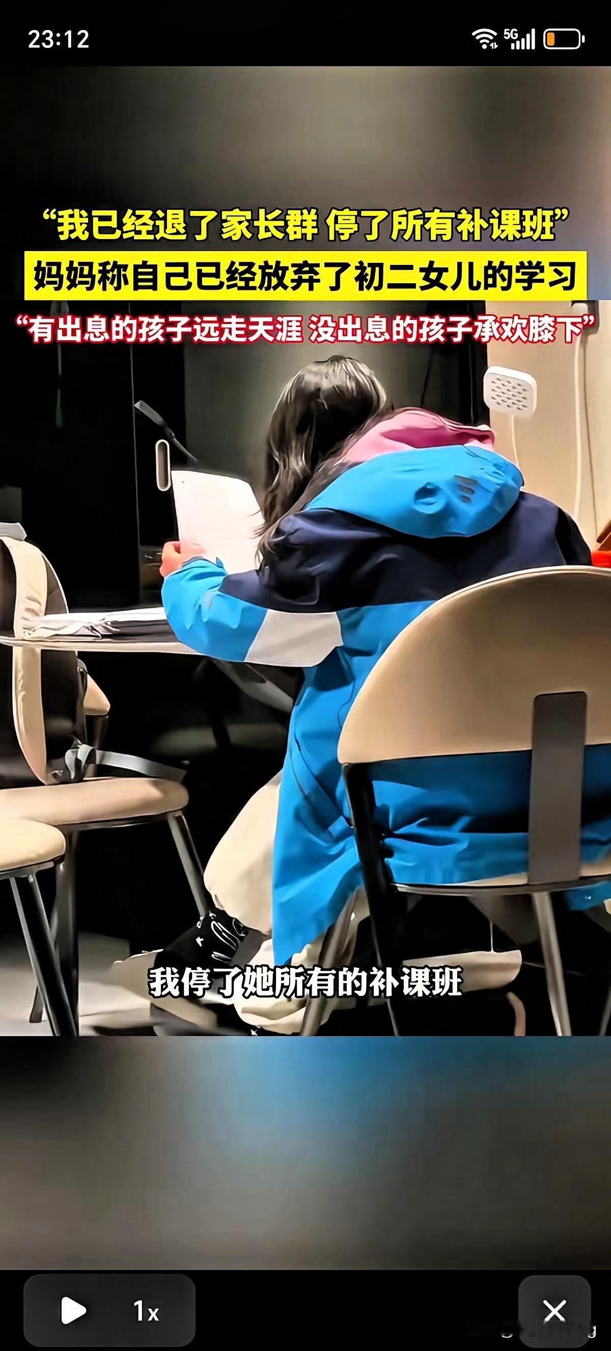 初二妈妈退群停补班,直言“放弃”女儿学习,这哪是摆烂,分明是捅破了教育内卷的真相! 多少家长困在分数焦虑里,把孩子逼成刷题机器,自己熬成神经衰弱,亲子关系剑拔弩张。这位妈妈的通透在于,她懂学习靠内驱力,不是逼出来的——真要学,不用催也会主动;没兴趣,补再多课也是白费功夫。 退群是远离攀比内耗,停补班是还给孩子成长空间。养娃从来不是养分数,而是养身心健全的人。那些喊着“为你好”的逼迫,往往不如“随你意”的包容更能滋养孩子。 所谓“放弃”,其实是放下执念,接受孩子的平凡。毕竟人生不是只有名校一条路,身心健康、活得舒展,比什么都重要。你认同这种“躺平式”教育吗?来聊聊你的育儿经~