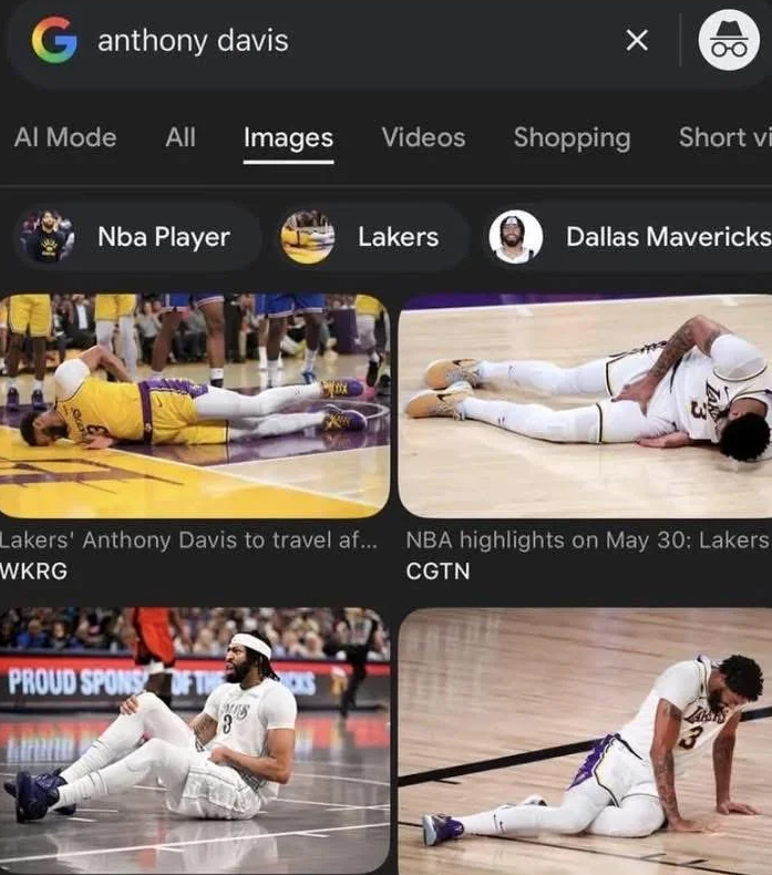 NBA Memes更新动态,晒出一张搜索截图与球迷分享。 “谷歌对安东尼-戴维斯真不友好!”NBA Memes调侃道。 根据之前的报道,安东尼-戴维斯加盟独行侠至今,出勤率只有40.3%。
