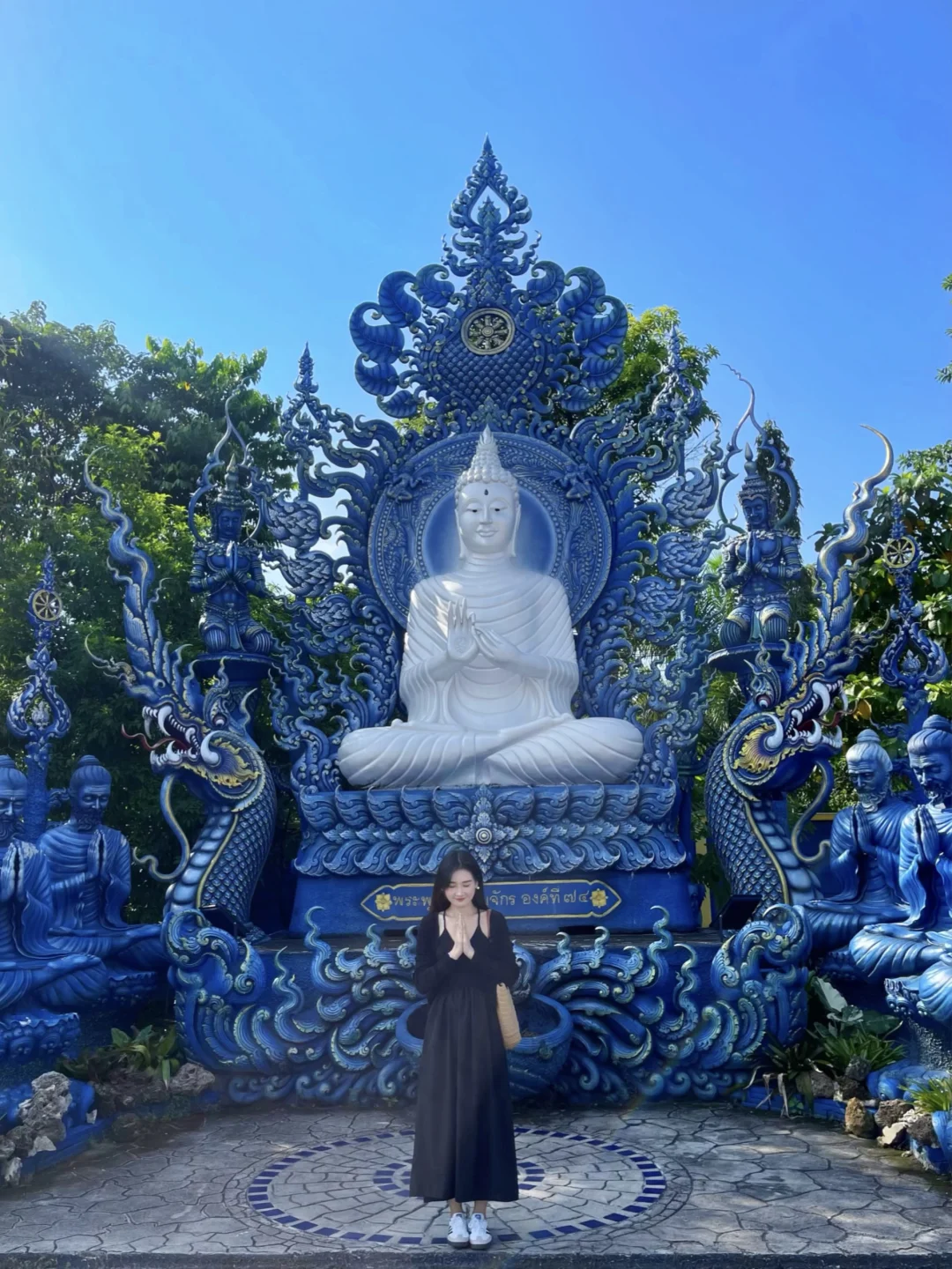 不同于清莱蓝庙,这座更古朴,以深邃蓝搭配金色,庄严感十足。