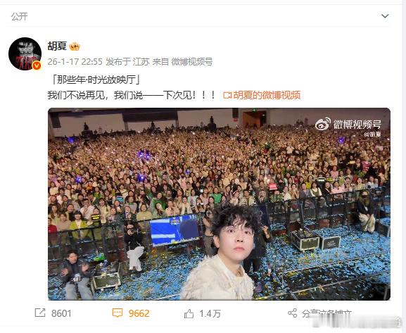 胡夏还没下台已经开始戒断了苏州收官场的温暖还没散去,就已经开始想念胡夏的歌声和笑容。10场巡演每一场都诚意满满,全场合唱的感动、互动时的亲切,都成为难忘的回忆。2026的新舞台快点来,我们还要一起创造更多美好瞬间。