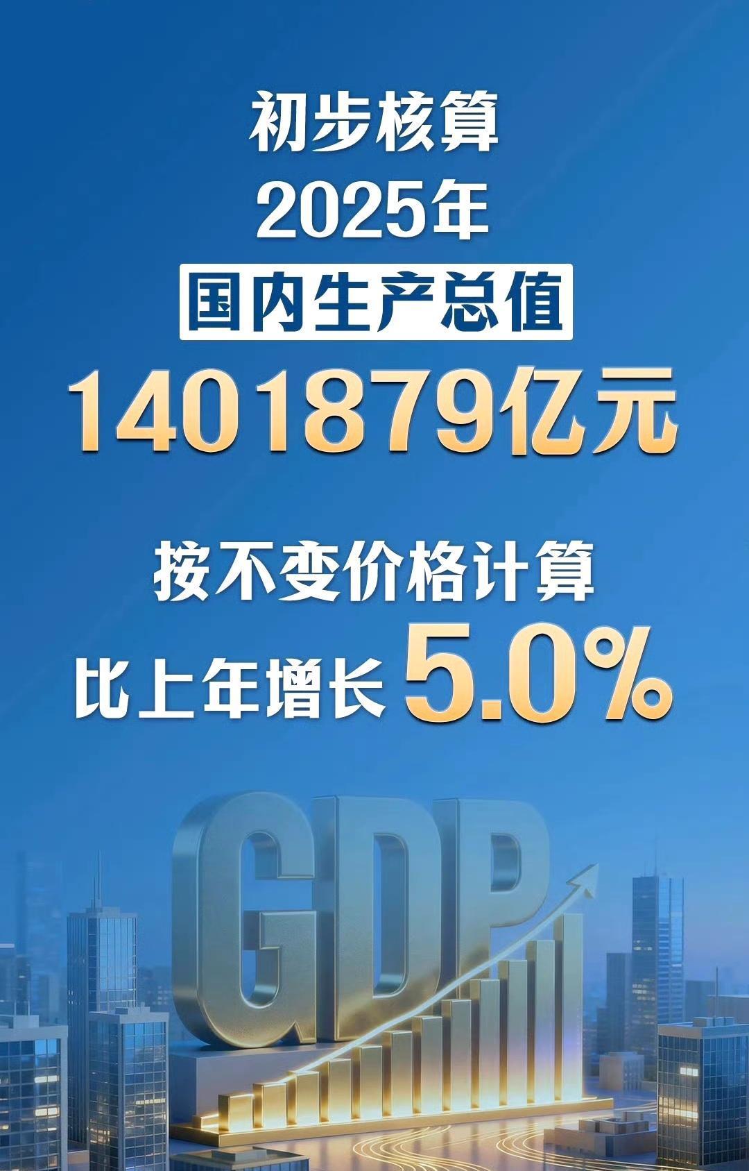 2025年中国经济年报。初步核算,全年国内生产总值1401879亿元,按不变价格计算,比上年增长5.0%。