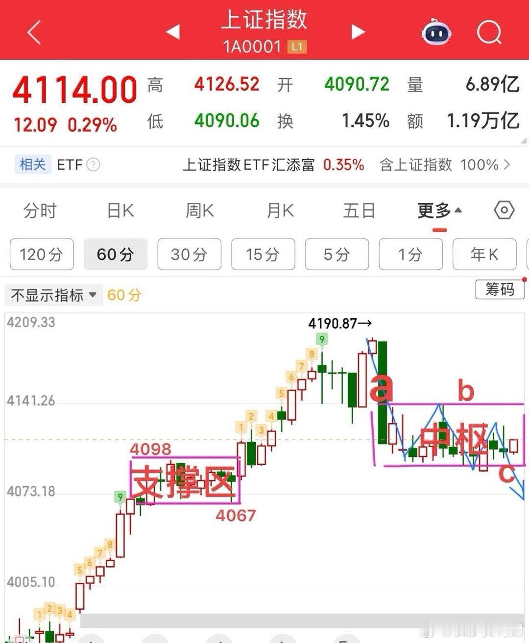 强势震荡,重个股节奏!指数变化不大,延续横向中枢震荡走势,以中枢为参考,做好后续走势分类即可:1.向下出背驰,比较ac段,即c弱于a背驰空头力量衰竭,会有回拉反弹的条件;2.突破4140向上,则有条件再去挑战4200点。个人认为第一种走势会更好。从大一点的结构上看,当前回调都可以当作是回踩4034确认动作,只要不破4034就都是正常合理的走势,另外5周均线(4050附近)也可以作为支撑参考。策略上,不追涨,不怕跌,拉回寻求个股机会。具体细节关注收评!