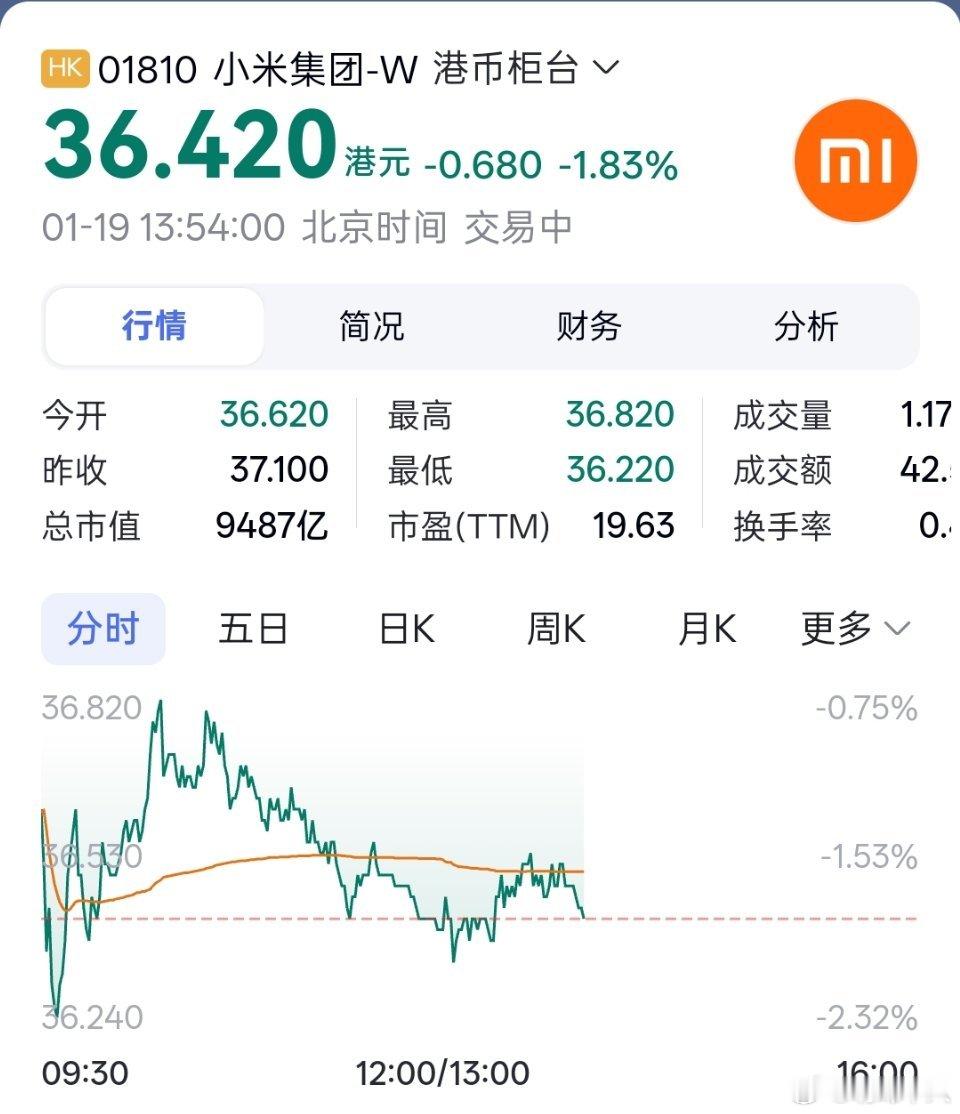 小米的股价到36.42了,请问可以抄底了吗?
