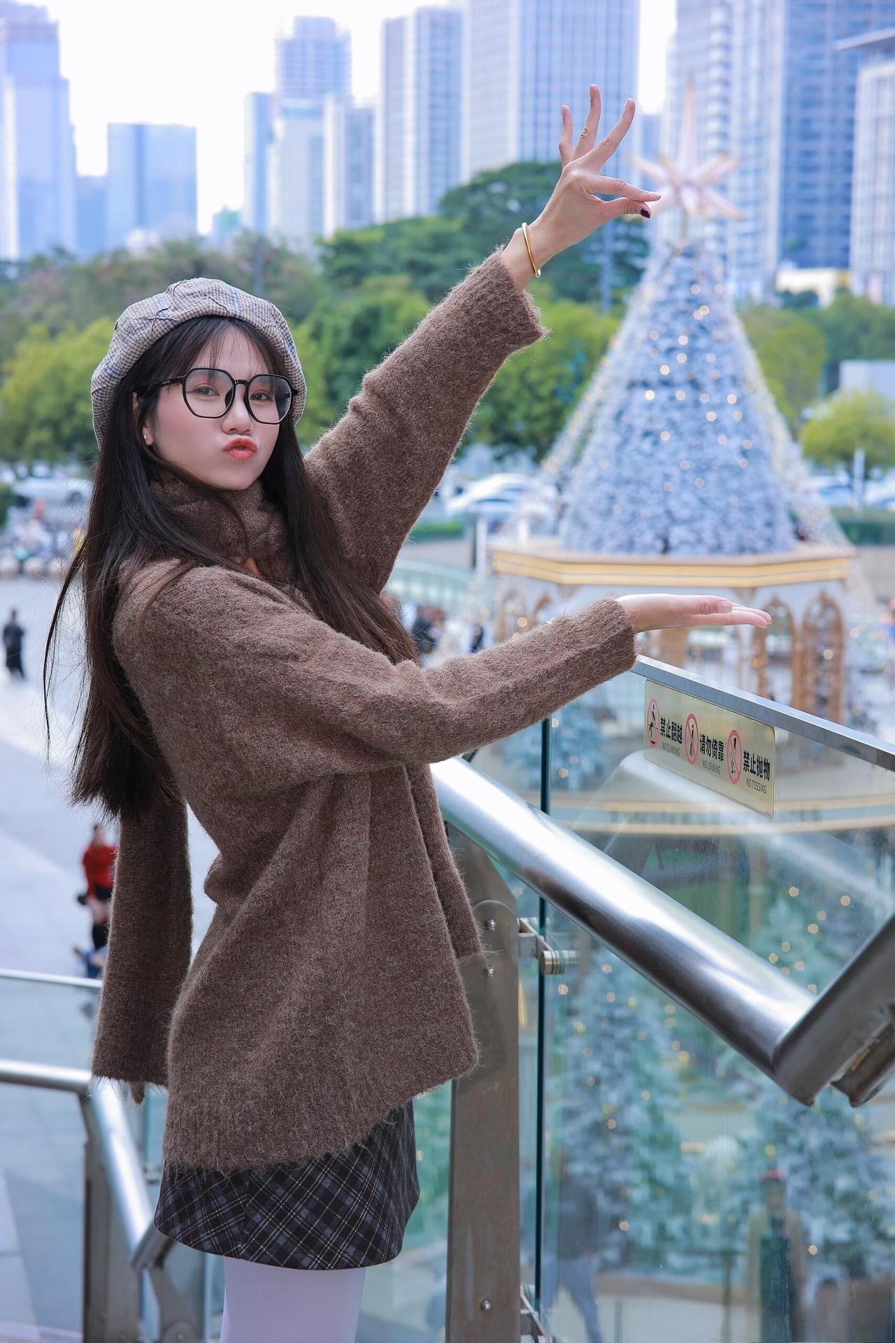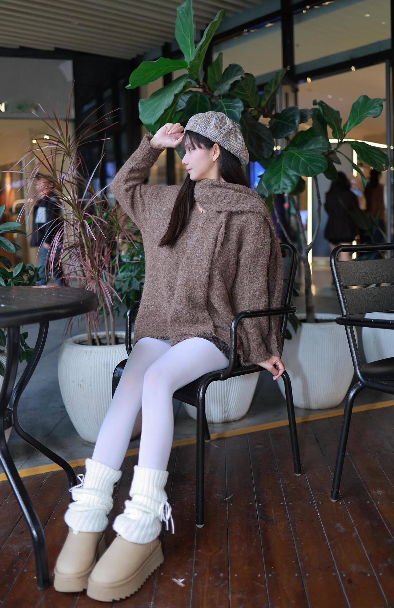 这套穿搭是软萌温柔的棕白甜系轻熟风,把松弛毛绒质感和少女细节融合。棕调宽松毛衣自带慵懒温柔感,高领+挖空细节添设计感;搭配毛绒堆堆袜靴,强化软萌甜系氛围。 搭配格纹贝雷帽提升复古甜美元素,让暖调造型更显精致,和绿植环绕的环境很契合。充分展现穿着者软萌温柔的轻熟魅力。棕色毛衣穿搭 奶茶棕毛衣穿搭