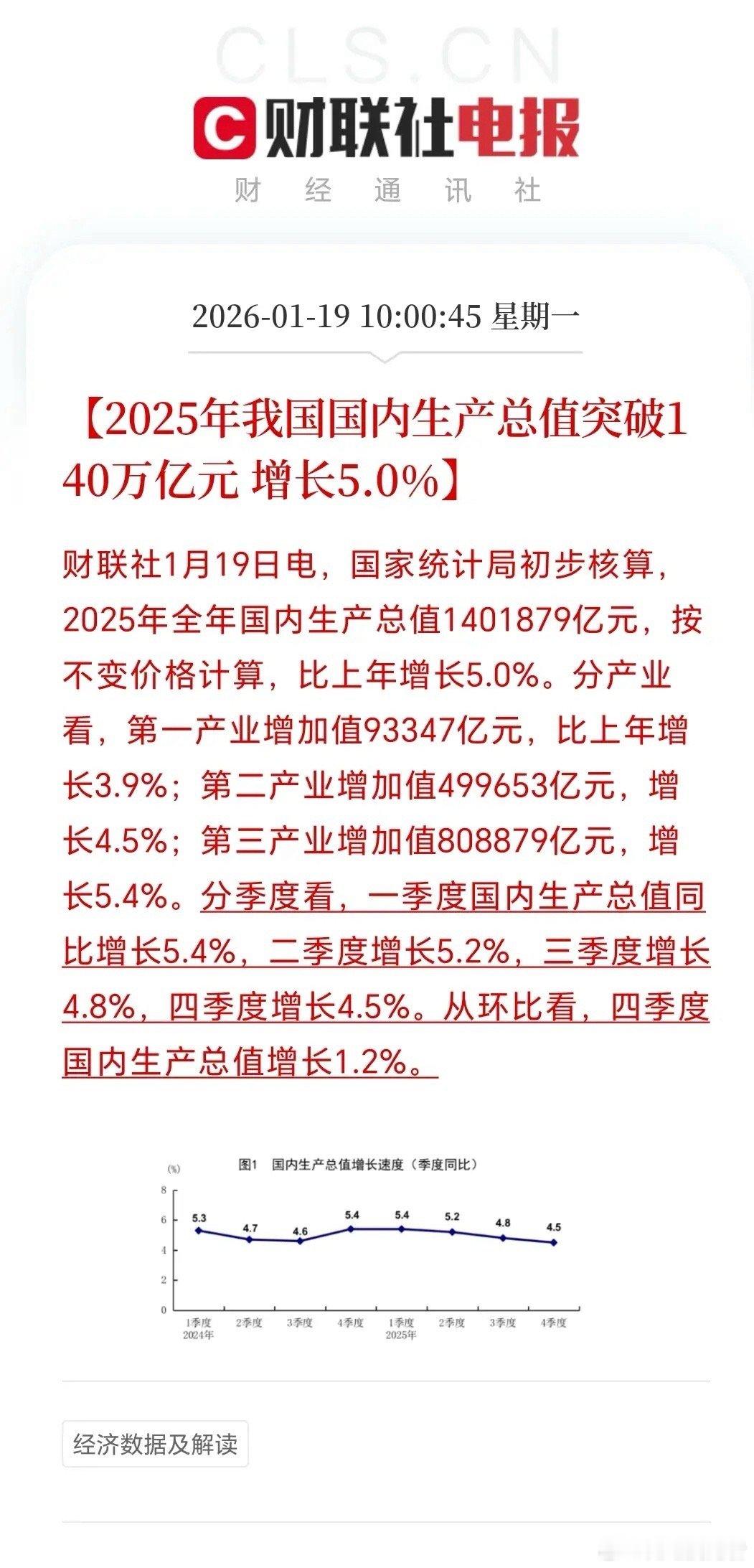 首超140万亿!去年中国GDP增速5%,这数据简直太牛了!按照这个增速,未来发展肯定更带劲。就拿一些新兴产业来说,像新能源汽车,这几年发展迅猛,不仅在国内销量节节攀升,还大量出口海外,为GDP增长贡献不少。还有数字经济领域,电商、直播带货等新业态不断涌现,创造了巨大的经济价值。而且GDP增长也意味着咱们老百姓的生活能越来越好,就业机会更多,收入也可能增加。相信在这样的增速下,中国经济会继续一路向前,让大家的日子越过越红火。 今日看盘上证指数a股