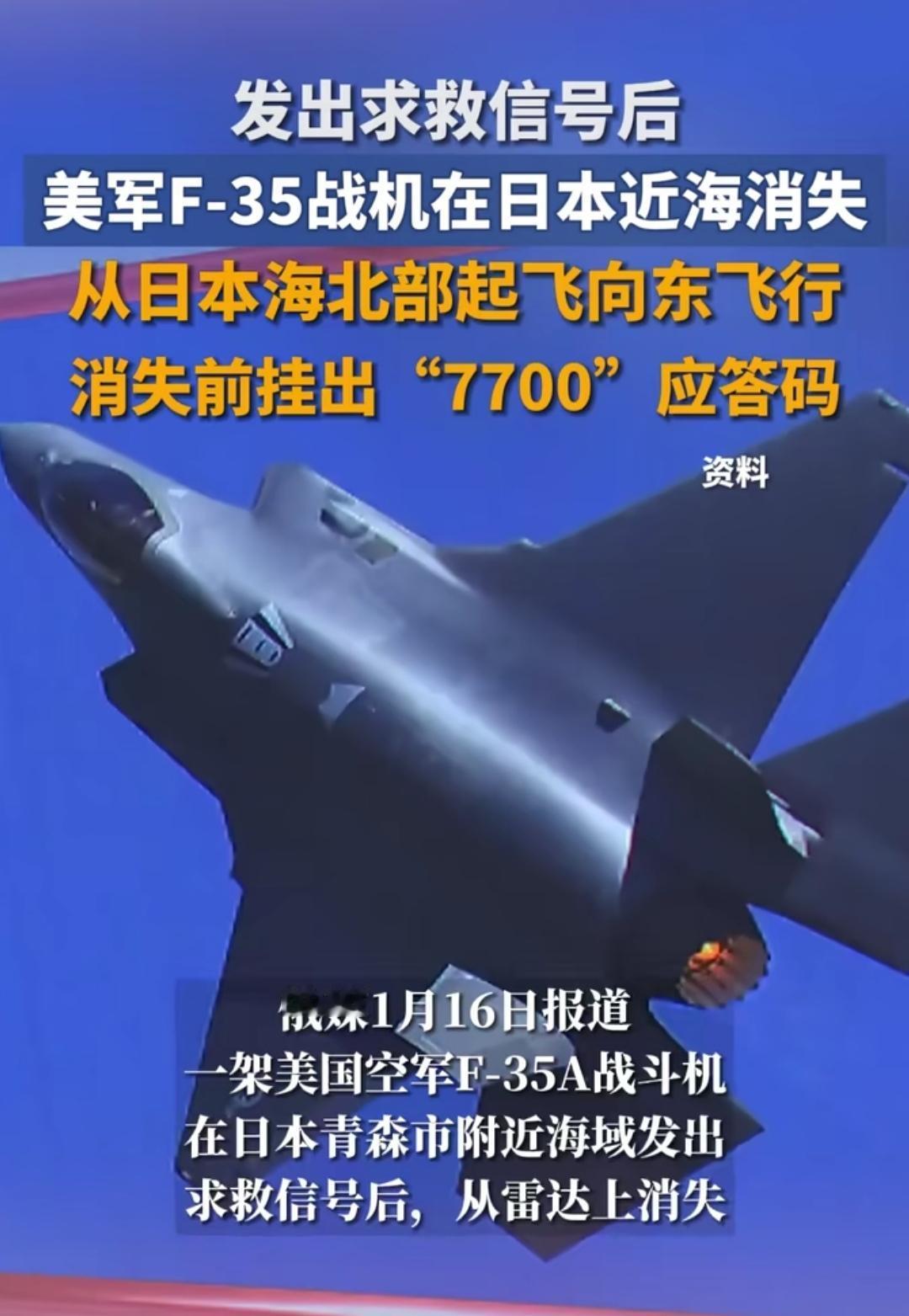 美军战机挂“7700”紧急码后凭空消失,这剧情比电影还抓心。1月16日这架F-35A的路线太蹊跷:从日本海北部起飞,先擦着青森陆地飞,突然转向东北,刚挂出全球通用的紧急码,雷达上就没了影。 要知道“7700”是“飞机快撑不住”的信号,可它偏绕了段陆地——是想迫降?还是故障突然到失控?连飞行雷达网站都只存了最后一段轨迹,后续一点信号没留。 现在最揪人的是飞行员:青森近海海水才7℃,失温致死就几小时,搜救队连碎片都没找全。这架战机到底是单纯故障,还是藏着别的事儿?你从这轨迹里看出啥了?评论区聊聊~