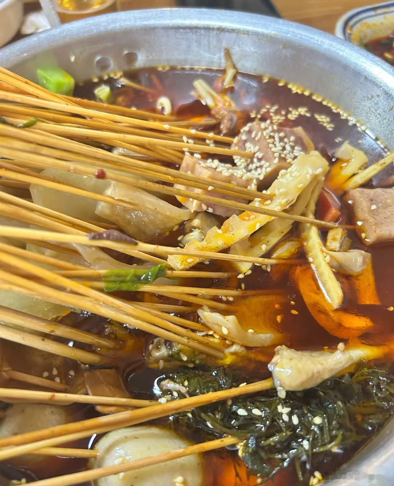 四川小县城 德阳市中江县中江县位于四川省德阳市,历史可追溯至三国时期,是一座拥有深厚文化底蕴的千年古城。小时候初次知道中江还是因为谢娜和挂面,现在才知这里不仅有享誉千年的非遗美食中江挂面,还有众多承载着历史记忆的古塔、古庙。孔虾子:不在中心城区,但是生意很好,很多人专门跑去吃,香辣虾和山椒兔是推荐菜,虾的分量比较足,个头也挺大的,配菜丰富,味道不错,但是跟正常干锅差距不大,食材比较新鲜。香鹅掌:中江数一数二的干锅,不管是鸭翅鸭掌还是排骨,都很有味道,煎炸之后再搭配小菜炒,很香,而且很耙,香辣味,不是粘呼呼那种。休记光头香辣蟹干锅:开了十多年了,招牌就是香辣蟹,螃蟹比较有肉,素菜种类很多很入味,还有其它干锅,也都不错,服务态度挺好。光明面店:本地老字号,除了吃面还可以点炒菜,里面位置不多但是可以拼桌,都是老熟人,面的软硬程度刚好,汤底调味不错,价格也很亲民,三两蹄花面10块,性价比高。老号豆花面店:中江老牌豆花面,她家汤底很浓郁,加上面条淡淡的碱水味,浓郁而劲道,撒了花椒面,吃下来又麻又辣,店里还有油茶,不过一定要早,不然吃不到。瓦房子钵钵鸡:不是大众印象中的钵钵鸡,比较像冷锅串串,味道比较老式,不是很重口,菜品比较新鲜,碗碗菜推荐火锅粉和蟹柳,蛋炒饭炒得也不错。烧饼哥:很多本地人都会去的老店,生意很好,牛肉饼是先油炸后进烤炉里面烤一下,味道很香,吃起来脆脆的,肉也很新鲜,有很多口味,原味猪肉的最经典。八宝油糕专卖店:中江特产之一,外皮酥松掉渣,内里软糯香甜,裹着花生芝麻这些料口感比较丰富,会有一点甜,不喜甜的朋友慎重。四川美食