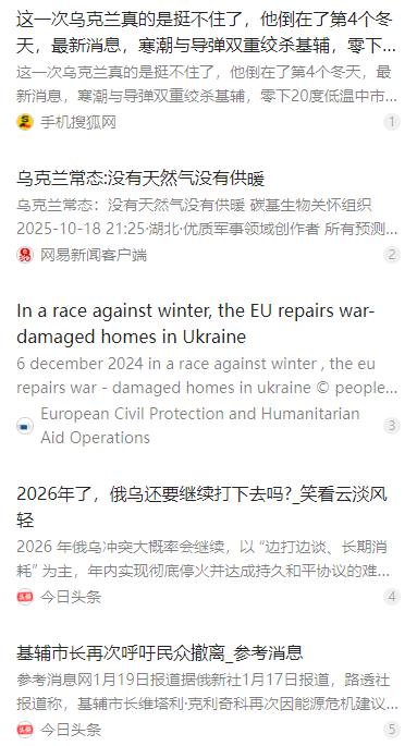 这一次乌克兰真的是挺不住了,他倒在了第4个冬天。最新消息,基辅城的市长克里琴科,已经开始号召市民,离开这座城市。目前基辅城大量的城区,已经失去了基本的城市功能。 麻烦看官老爷们右上角点击一下“关注”,既方便您进行讨论和分享,又能给您带来更多优质的内容,感谢您的支持! 2026 年 1 月的基辅,被零下 15 度的严寒与持续的战争阴影笼罩。这座坚守了四年的城市,在冲突进入第四个冬天时,终于显露出难以支撑的疲态。基辅市长维塔利・克利奇科近期连续发布呼吁,恳请有条件的市民暂时离开首都,这一表态让外界真切感受到局势的严峻。 如今的基辅,大量城区已失去基本城市功能。乌克兰能源部 1 月 16 日宣布能源系统进入紧急状态,全市供暖陷入历史上最严重的困境,一大部分区域彻底断暖。供电更是实行 “三小时供电、十小时断电” 的交替模式,居民的日常生活被切割得支离破碎。 水利、交通等基础设施也濒临瘫痪,地铁因架空线路受损大面积延误,部分路段因停电限行,救援车辆的灯束成了寒夜里少数的光亮。铲雪车清理倒塌建筑的轰鸣,取代了昔日的城市喧嚣,这座曾经繁华的都市,如今满是战争留下的伤痕。 其实早在这个冬天来临前,乌克兰的处境就已岌岌可危。能源、基础设施和财政三大领域同时亮起红灯,电力、供暖设施在多轮空袭与反击中反复受损,维修工作陷入 “修了又炸、炸了再修” 的恶性循环。 俄罗斯对哈尔科夫州和波尔塔瓦州的打击,摧毁了乌克兰 60% 的天然气开采能力,让原本就依赖进口的能源供应雪上加霜。乌克兰能源部不得不紧急寻求额外天然气进口,仅供暖季就需要采购 44 亿立方米燃料,这对财政拮据的乌克兰来说无疑是巨大负担。 前三个冬天,乌克兰还能靠着外部紧急援助、临时抢修和跨区域电力调度勉强维持运转。欧盟及国际人道组织曾帮助修复超过 80,000 栋受损房屋,让部分民众得以在温暖中过冬,那些临时修补的窗户和屋顶,成了当时支撑城市运转的关键。 但连续四年的消耗,让这种 “修修补补” 的空间彻底消失。能源系统的紧急维修成本已高达约 7.58 亿欧元,受损范围不断扩大,维修所需的零部件和技术支持也逐渐短缺,单纯的临时修复再也无法满足基本运转需求。 财政层面的衰竭更是让乌克兰举步维艰。持续的战争让经济活动严重萎缩,税收基础被大幅削弱,作为曾经重要收入来源的天然气过境运输业务,也因行业改革和设施破坏而难以为继。乌克兰石油天然气公司已濒临破产,无力承担天然气进口的巨额开支。 民众拖欠的天然气、热力及热水供应费用累计超过 674 亿格里夫纳,供热公司也因此拖欠能源企业巨额款项,形成恶性循环。乌克兰政府不得不向欧洲复兴开发银行、欧洲投资银行申请贷款,同时寻求七国集团的赠款,公共服务的维系完全依赖外部资金注入。 更严峻的是,西方援助在第四个冬天出现大幅缩水。美国特朗普政府已停止提供 “爱国者” 防空导弹和 155 毫米炮弹,整体援助规模同比减少 80%。欧盟内部也出现分歧,德国、意大利等国对援乌力度态度谨慎,让乌克兰的外部支持变得极不稳定。 军事层面的被动,让基辅的困境雪上加霜。2026 开年以来,俄军在顿涅茨克、扎波罗热等方向持续施压,1 月中旬已在顿涅茨克连下 7 个市镇,同时重点打击乌军能源与军工设施,战略主动权完全掌握在俄方手中。 乌军则面临兵力短缺、防空弹药告急的困境,只能依靠无人机袭扰等方式牵制俄军,防御空间持续收缩。极寒天气限制了大规模地面机动,双方更多聚焦于核心设施的远程打击,战场烈度未减但乌军已难有反击之力。 基辅的艰难处境,正是乌克兰整体战局的缩影。这场持续四年的冲突,已让乌克兰陷入 “领土难收复、援助在减少、民生无保障” 的三重困境。曾经寄托希望的 “消耗战”,如今变成了对本国资源和民众耐力的消耗。 乌克兰政府为采购天然气和维修设施四处举债,却不得不高价购买经 “土耳其溪” 管道绕行而来的俄罗斯天然气,这种荒诞的现实,凸显了其能源政策的被动。而夏季未能充分利用低价窗口期储备天然气,又让冬季的能源短缺雪上加霜。 对基辅市民而言,离开家园是无奈之举。他们或许还记得前几个冬天的坚守,那些在临时供暖点相互取暖、在停电的夜晚点亮蜡烛的日子,如今却不得不面对 “无暖可依、无电可用” 的绝境。地铁站里挤满了躲避轰炸和严寒的民众,街头很少能看到孩子的身影,征兵令让许多年轻人直接走上前线。 第四个冬天的严寒,不仅冻结了基辅的街道,更冻结了乌克兰的希望。能源短缺、财政枯竭、军事被动、援助缩水,多重压力叠加之下,这座坚守四年的城市终于难以支撑。战争的残酷,在这个冬天展现得淋漓尽致,而和平的曙光,依然遥不可及。