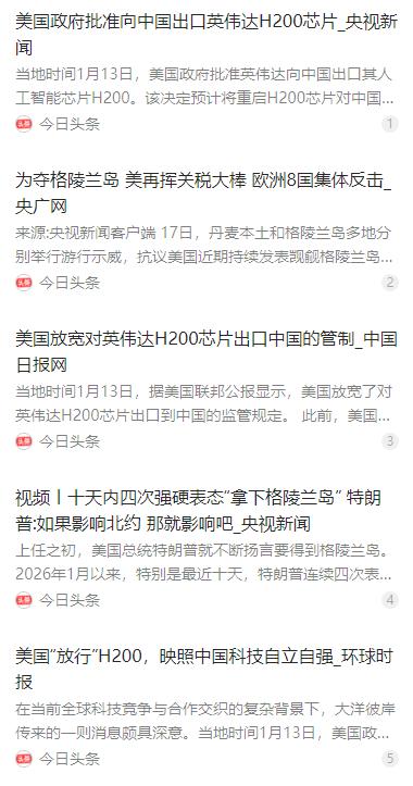 现在的美国的确太可怕了! 可怕的不是他的经济实力和军事实力,而是他对自己的实力有着清晰的认知!并且凭着自己实力去精准的达到自己的目的! 麻烦看官老爷们右上角点击一下“关注”,既方便您进行讨论和分享,又能给您带来更多优质的内容,感谢您的支持! 可怕的不是他的经济实力和军事实力,而是他对自己的实力有着清晰的认知,并且凭着这份实力精准达到自己的目的,这种不加掩饰的精算和霸道,才是最让人警惕的地方。 2026 年 1 月以来,特朗普政府的一系列操作把这种 “可怕” 展现得淋漓尽致。短短十几天里,两波看似毫无关联的动作,背后却藏着高度统一的逻辑,每一步都踩着美国的实力优势,朝着国家利益最大化的目标推进。 1 月 9 日,特朗普在白宫与大型石油企业高管的会议上再次亮明态度,美国必须得到格陵兰岛,不管是用 “容易的方式” 达成交易,还是用 “困难的方式”,这个目标都不会改变。这已经是他十天内第四次就格陵兰岛发表强硬表态,从强调 “绝对需要” 到明确 “完整所有权”,立场一次比一次坚定。 格陵兰岛作为世界第一大岛,是丹麦的自治领地,拥有高度自治权,国防和外交事务由丹麦政府掌管。它身处北极圈内的特殊地理位置,加上丰富的稀土资源和关键航道控制权,让美国觊觎了半个多世纪。从杜鲁门政府开出 1 亿美元黄金收购,到如今特朗普的强势施压,美国对这座岛屿的野心从未熄灭。 特朗普的强硬表态很快引发连锁反应。1 月 17 日,格陵兰岛首府努克和丹麦多地爆发大规模示威游行,当地民众和政界人士纷纷发声,“我们的未来由我们自己决定”,明确反对美国的 “夺岛” 图谋。丹麦副首相直接指出,特朗普的威胁完全不可接受,欧洲多国也迅速站在丹麦一边。 面对欧洲的集体反对,特朗普毫不退让,当天就通过社交平台宣布,从 2 月 1 日起对丹麦、挪威、瑞典等 8 个反对国家的输美商品加征 10% 关税,6 月 1 日起还将提高至 25%,直到对方同意美国 “完全、彻底购买格陵兰岛”。这种用关税大棒胁迫盟友的做法,彻底点燃了跨大西洋关系的紧张局势。 欧盟委员会主席冯德莱恩和欧洲理事会主席科斯塔联合声明,称美方举动会破坏跨大西洋关系,引发危险的恶性循环。英国、法国、德国等国领导人也纷纷表态,有的直言 “不会被勒索”,有的强调要通过团结协调作出回应,欧洲甚至开始酝酿对美国科技巨头和金融企业的制裁计划。 就在格陵兰岛风波愈演愈烈之际,另一项看似矛盾的政策同步落地。当地时间 1 月 13 日,美国政府正式批准英伟达 H200 人工智能芯片对华出口,这一决定打破了此前的出口限制,让市场颇感意外。但这份 “放行” 绝非善意,背后是精心算计的利益交换。 美方给这项出口附加了一系列苛刻条件:交易必须经过美国商务部的安全审查,美方要收取销售额 25% 的费用,还设置了复杂的第三方审查和最终用途核查机制。更关键的是,允许出口的 H200 芯片,性能上落后于美国最先进的 Blackwell 架构产品,刻意维持着一代以上的技术代差。 这种限制并非无的放矢。美国的算盘很明确,一方面通过对华销售芯片获取巨额商业利润,让本国企业继续占据中国市场份额;另一方面用 “次优” 技术的限制性供应,拖延中国在先进制程芯片领域的攻坚速度,牢牢守住自己的科技优势。 两波操作看似南辕北辙,一个是对盟友的极限施压,一个是对竞争伙伴的有条件开放,但本质都是美国基于自身实力的精准布局。格陵兰岛问题上,美国动用的是军事基地优势、经济关税杠杆和地缘战略主动权,靠硬实力逼迫对方让步。 芯片出口问题上,美国则玩转规则制定权,利用科技领域的先发优势,把技术 “武器化”“政治化”。通过设置歧视性条款,既实现了短期的经济变现,又巩固了长期的技术霸权,这种两头占优的操作,把实力认知转化为实际利益的能力展现得淋漓尽致。 国际社会对这两套操作的本质看得很清楚。塞尔维亚学者米特罗维奇直言,美国觊觎格陵兰岛的行为违反国际法,破坏地区稳定,而频繁使用关税施压的做法不仅损害他国利益,也在削弱自身的国际影响力。 在芯片领域,美方的歧视性政策也遭到诟病。同样的 H200 芯片出口,美国对其他贸易伙伴并未设置如此严苛的条件,唯独针对中国搞特殊限制,这种双重标准恰恰暴露了其遏制中国科技发展的真实意图。 特朗普政府甚至直言,为得到格陵兰岛 “保留所有选项”,包括武力夺取、挑唆独立、条约绑定等手段。有美媒宣称,凭借在格陵兰岛的军事基地,美军 “可能只需 5 架直升机” 就能控制该岛,但这种军事冒险会让北约彻底终结,付出巨大政治代价。