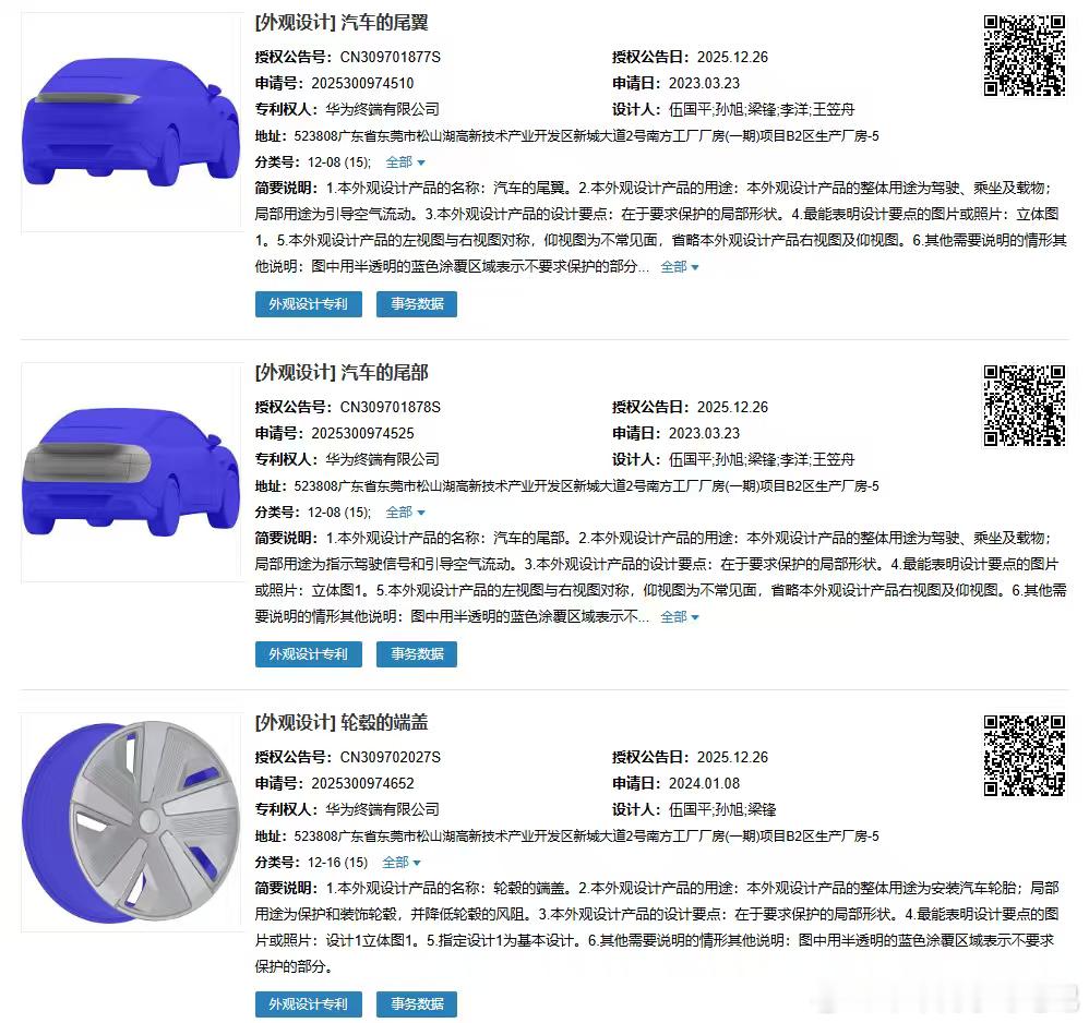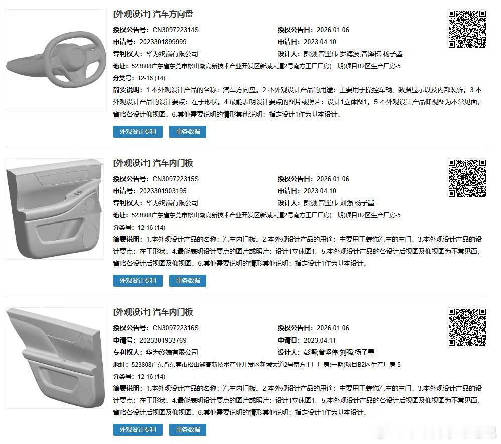 华为终端自己手里也有申请了不少外观的专利,之后可能会用于鸿蒙智行体系共同使用,看