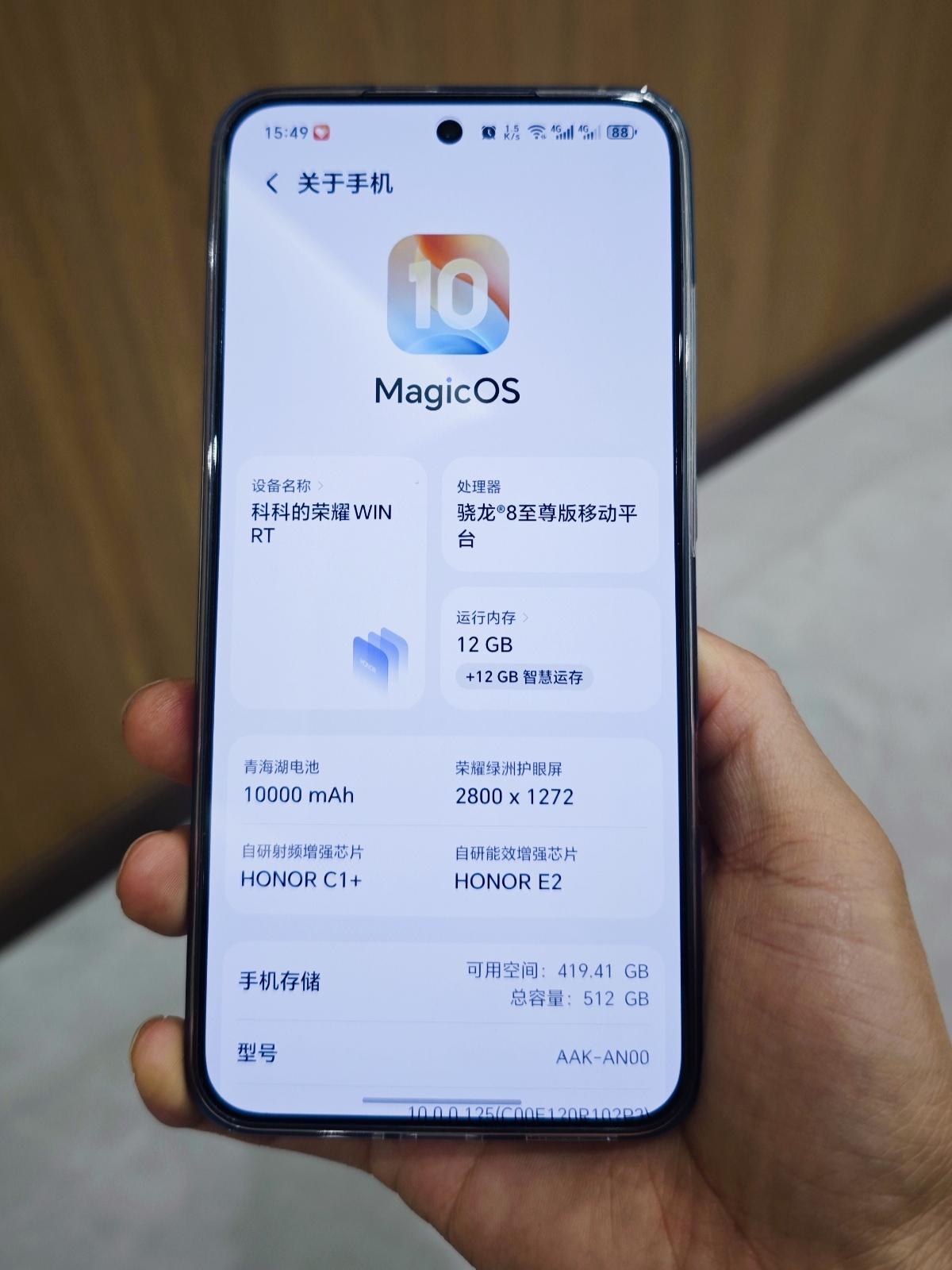 用了3天荣耀win rt,这几点没想到 1,10000电池经用到震惊三观,充满电可用70多个小时,日常完全是无敌了。 2,185hz高刷屏,游戏根本停不下来,就是开一局后,基本上其他手机已经不入眼了。 3,8E在风扇的加入后,在性能上,不输8E5,而且噪音也不大。 其实就拿续航来说,普通用户刷刷剧,看看新闻,开上几局游戏,极限用个两三天没问题,性能也很逆天,骁龙8至尊+风扇+VC散热,而且在屏幕上,包括5920hz高频pwm调光,类自然光,游戏防眩晕...荣耀的护眼技术,我敢说称第二,没人敢称第一,打败自己的只有接下来的新款,另外还有双1216立体,音质很舒服,包括机身厚度,背板手感,当然以上是个人感受,手机怎么样见仁见智,用过的才知道一点没吹捧,我甚至觉得没必要上WIN,就RT对于大多数人来说完全够用了。