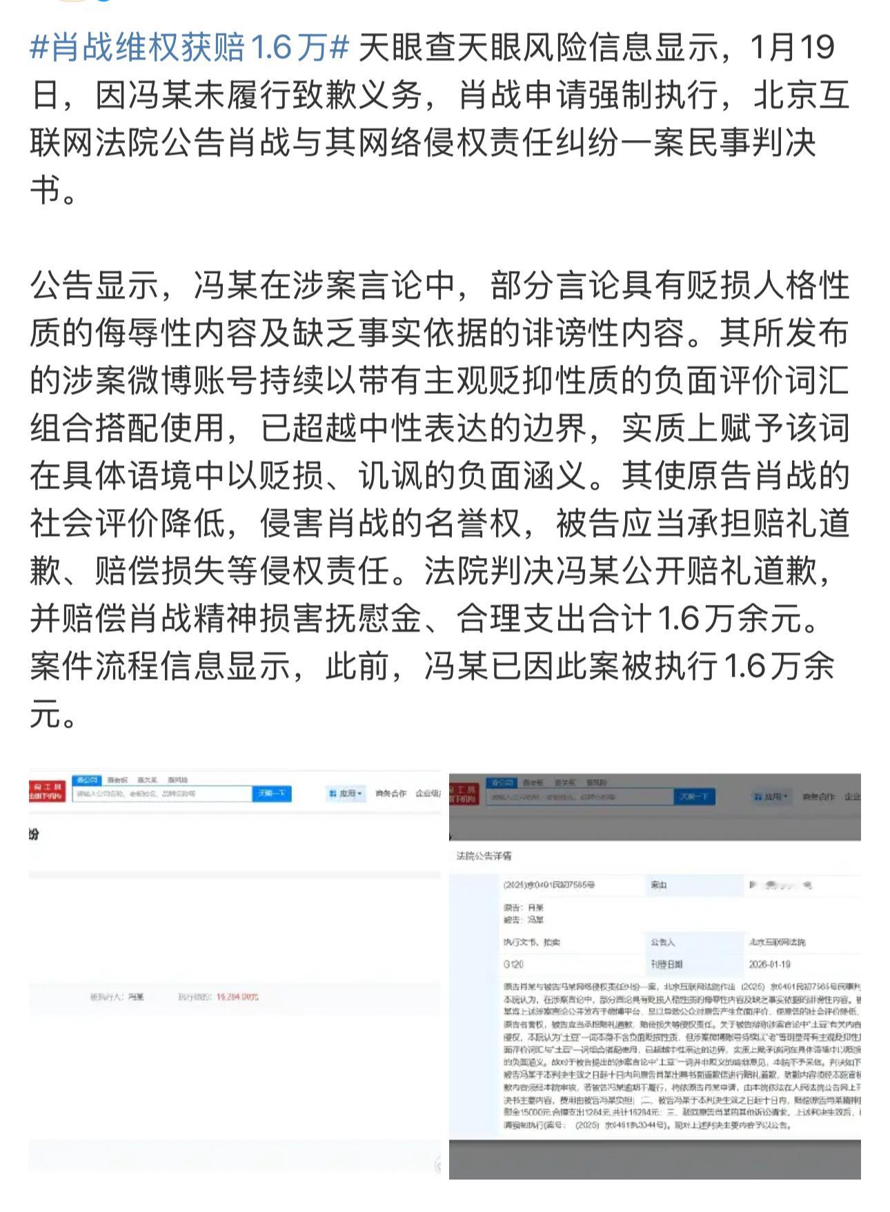 肖战维权获赔1.6万不错!!多告