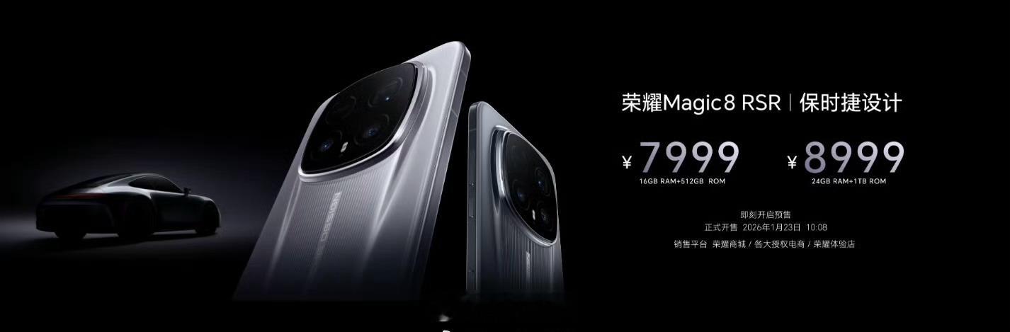 荣耀 Magic8 RSR 保时捷设计(骁龙 8 Elite Gen5)16+512GB 7999 元24+1TB 8999 元荣耀 Magic8 Pro Air(天玑 9500)12+256GB 4999 元12+512GB 5299 元16+512GB 5599 元16+1TB 5999 元国补便宜500块钱荣耀发布会,感觉不贵新机来了