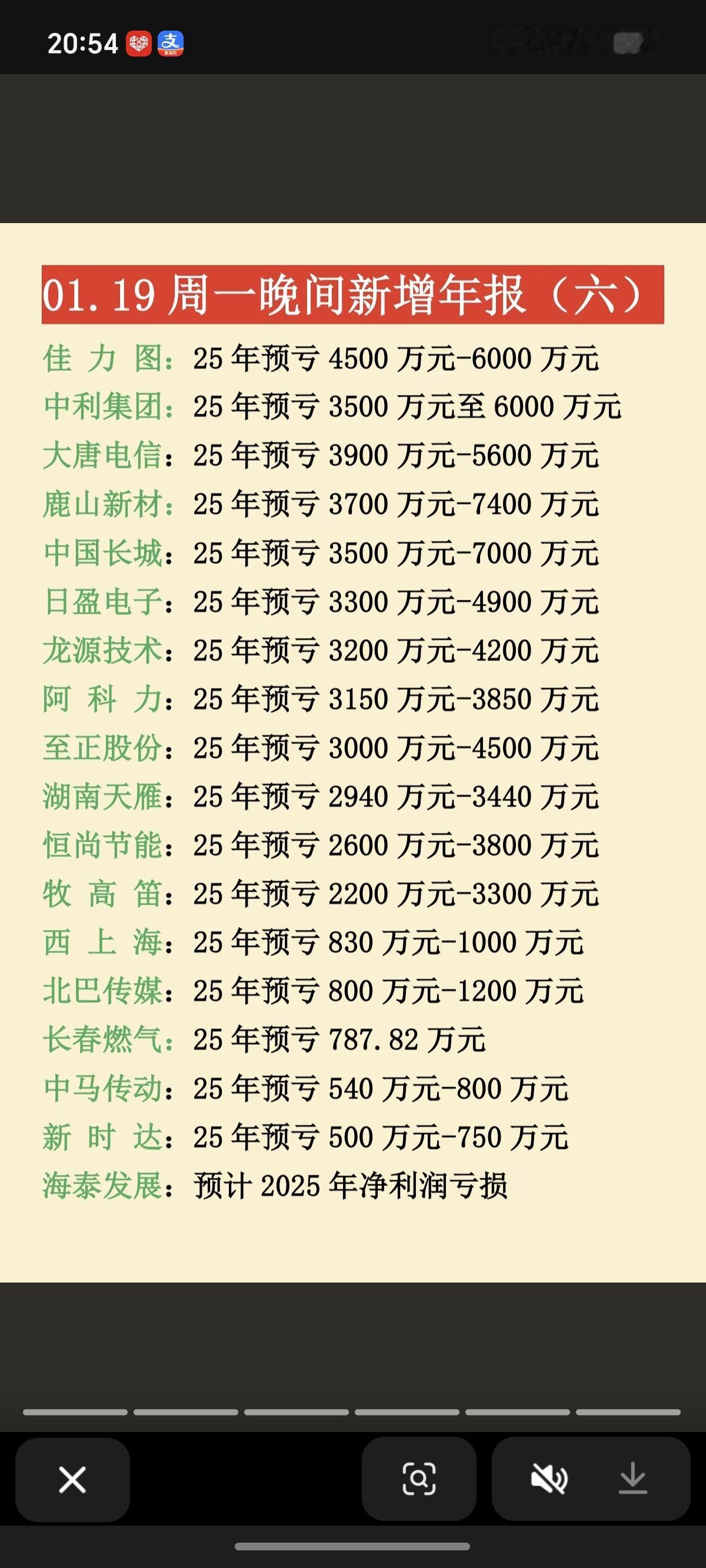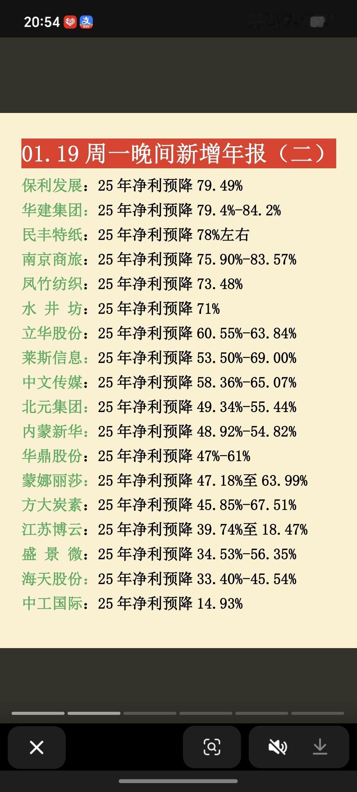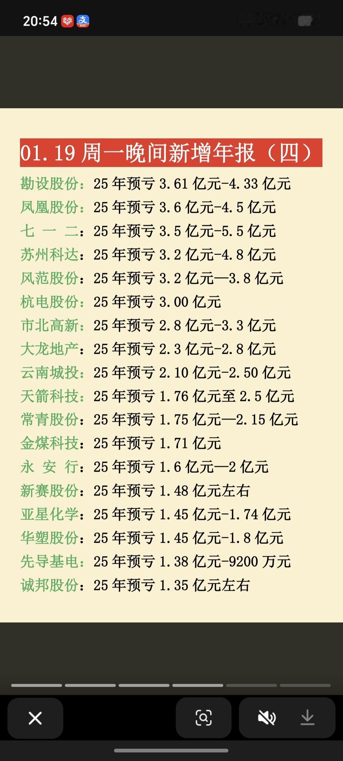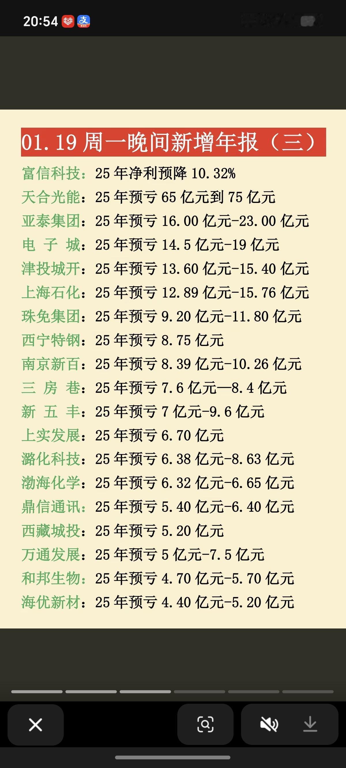 1.19周一 晚间 最新:25年年报业绩预告 17家年报预盈预增,97家年报亏损!