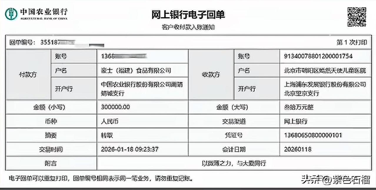最新消息:目前支持嫣然天使儿童医院并捐款的企业有两家。 一家是豪士(福