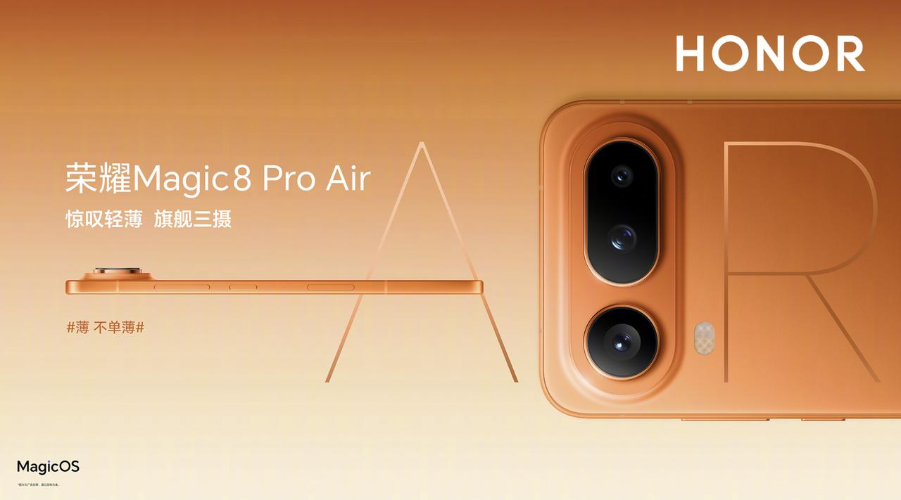 国内智能手机市场的超薄赛道迎来重量级玩家!荣耀正式发布Magic8 Pro Air,这款被王自如盛赞“工艺有突破”的新机,凭借技术创新打破了海外品牌在高端轻薄市场的垄断,成为2026年最值得期待的国产旗舰。 作为荣耀冲击高端轻薄市场的核心力作,Magic8 Pro Air的产品卖点诚意拉满。6.31英寸1.5K OLED直屏支持3840Hz高频PWM调光,护眼与流畅度兼顾;天玑9500处理器搭配16GB智慧运存,多任务切换和大型游戏体验拉满。最让人惊艳的是空间利用率,荣耀通过技术优化在6.1mm超薄机身内,同时塞进5500mAh大容量电池和全焦段影像系统,后置5000万主摄+超广角+6400万潜望长焦的组合,覆盖从微距到30倍数字变焦的全场景拍摄需求。 对比定价7999元起的iPhone Air,其eSIM限制、单扬声器、续航偏弱等妥协配置,在荣耀Magic8 Pro Air的全面配置面前显得性价比不足。荣耀用实打实的技术突破和产品诚意,让消费者看到:国产高端轻薄机不仅能做到轻薄便携,更能在性能、续航、影像等核心维度全面领先,成为比iPhone Air更值得选择的旗舰之选。 荣耀发布Magic 8 Pro Air
