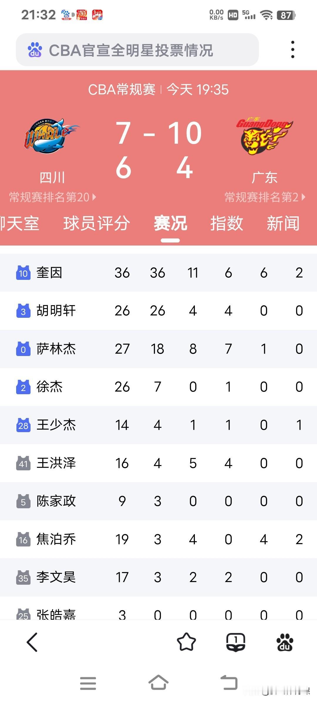 广东客场104:76大胜四川结束两连败,赛后杜锋透露两个不好消息。 1.徐杰最近状态低迷和身体不舒服有关,身体出现一点点感冒。 2.麦考尔暂时还有复出具体时间,需要等医队确认完全康复才可以复出。 徐杰状态低迷,麦考尔复出时间未定,崔永熙早早就想复出又被拒绝,李文昊,陈家政经验不足,张文逸又得不到杜锋的重用,杜锋不防让徐杰轮休,重新激活杨溢为后卫线减少压力,毕竟奎因组织控场不够稳定,胡明轩失误不少,下一场客场挑战吉林难度不小。