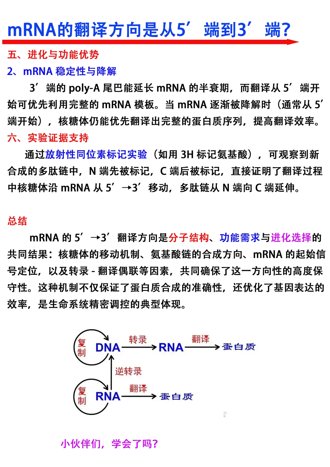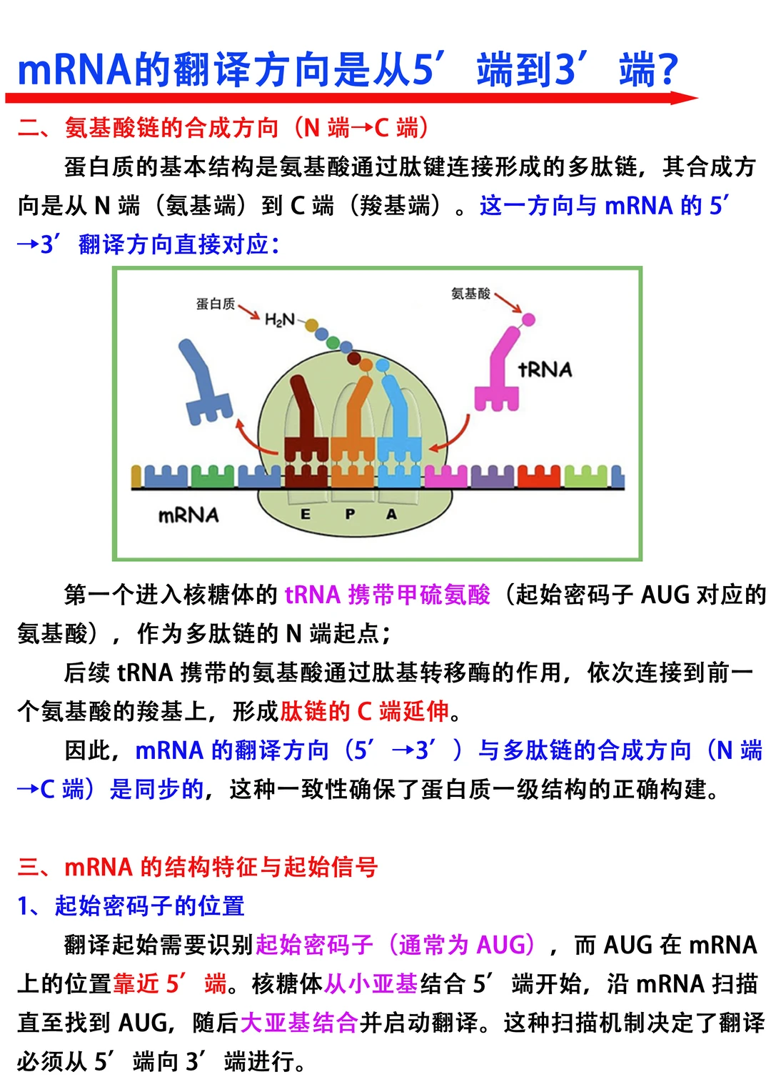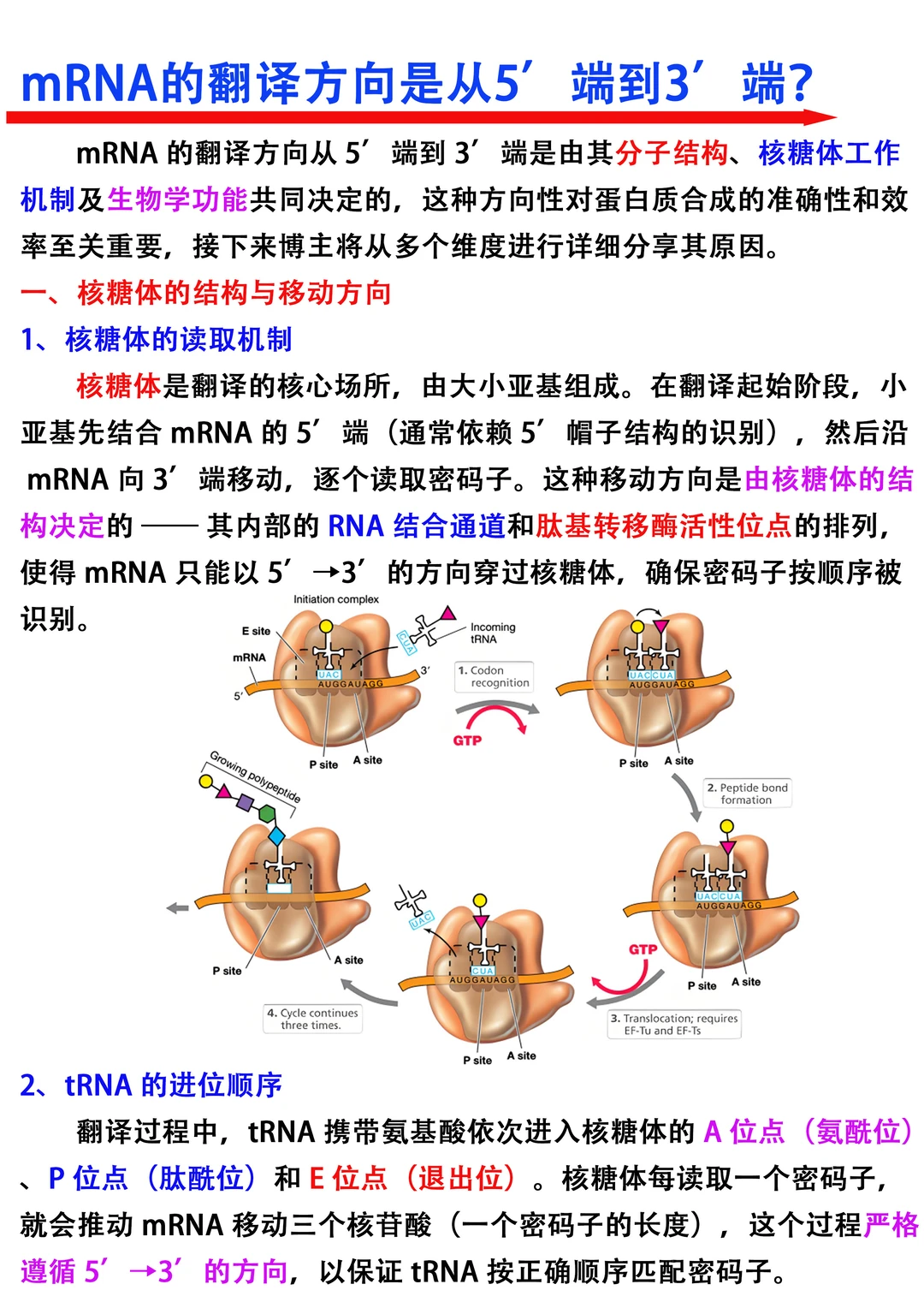[萌萌哒R] 我们知道mRNA翻译方向5端到3端,但是你知道为什么这样吗?由什么原因决定的吗?本期博主来跟大家分享一下为什么mRNA翻译方向5端到3端?